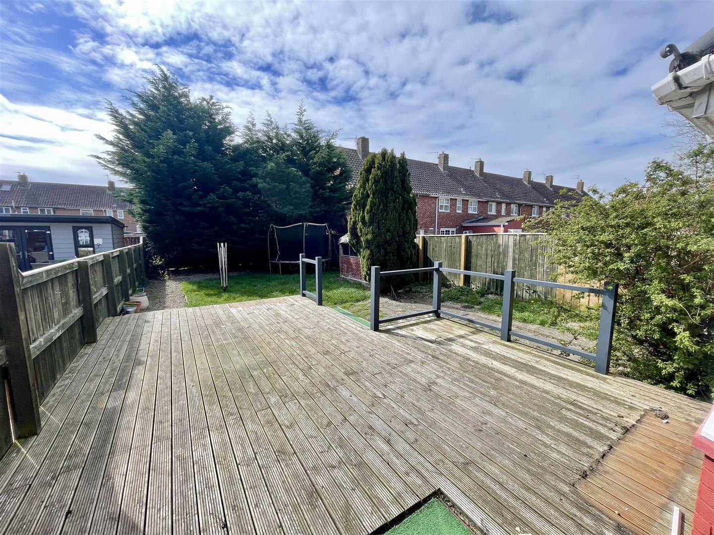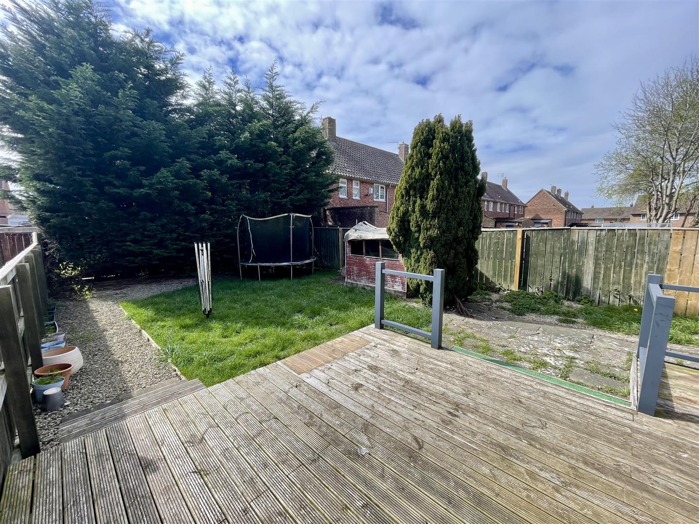 To the rear is an enclosed garden which is mainly laid to lawn with a large patio area and decking. Well established borders and shrubs with two brick built storage sheds.
