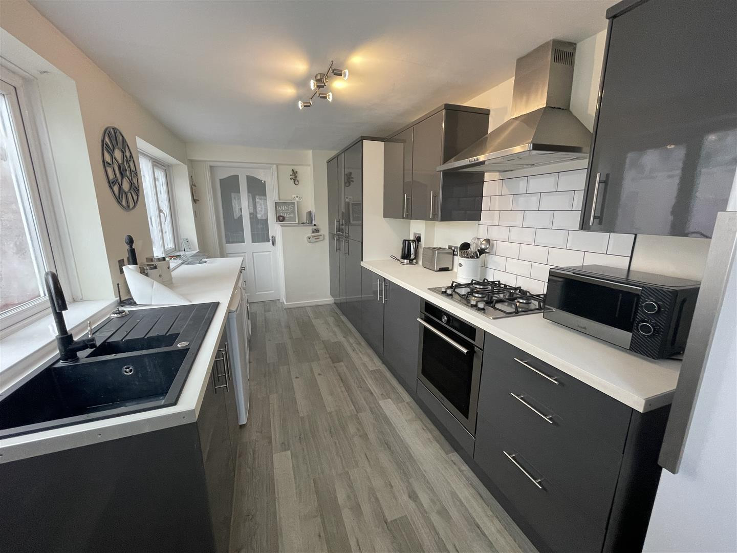 Upon entering, you are welcomed by an inviting entrance vestibule that leads into a spacious hallway. The ground floor boasts a generous lounge, perfect for relaxation, and a separate dining room that provides an ideal space for entertaining guests. The highlight of the home is the superbly refitted grey kitchen, which comes complete with built-in oven, hob and extractor ensuring both style and functionality.