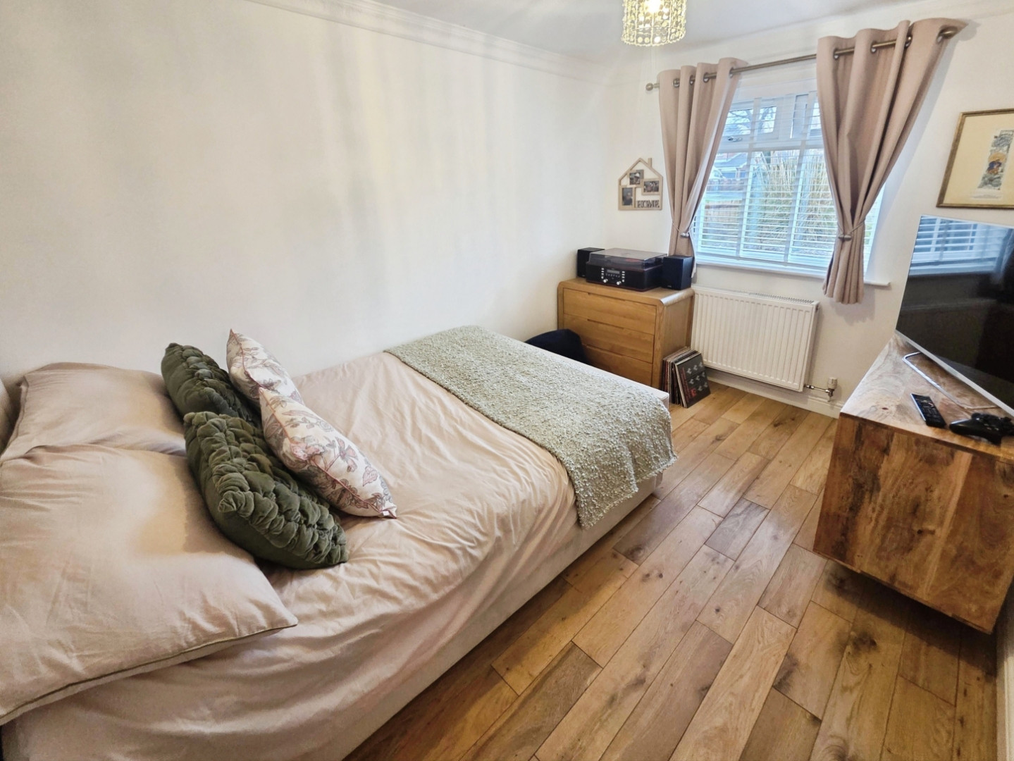 Having Fitted wardrobes to one wall, central heating radiator, solid oak flooring and uPVC double glazed window to front.