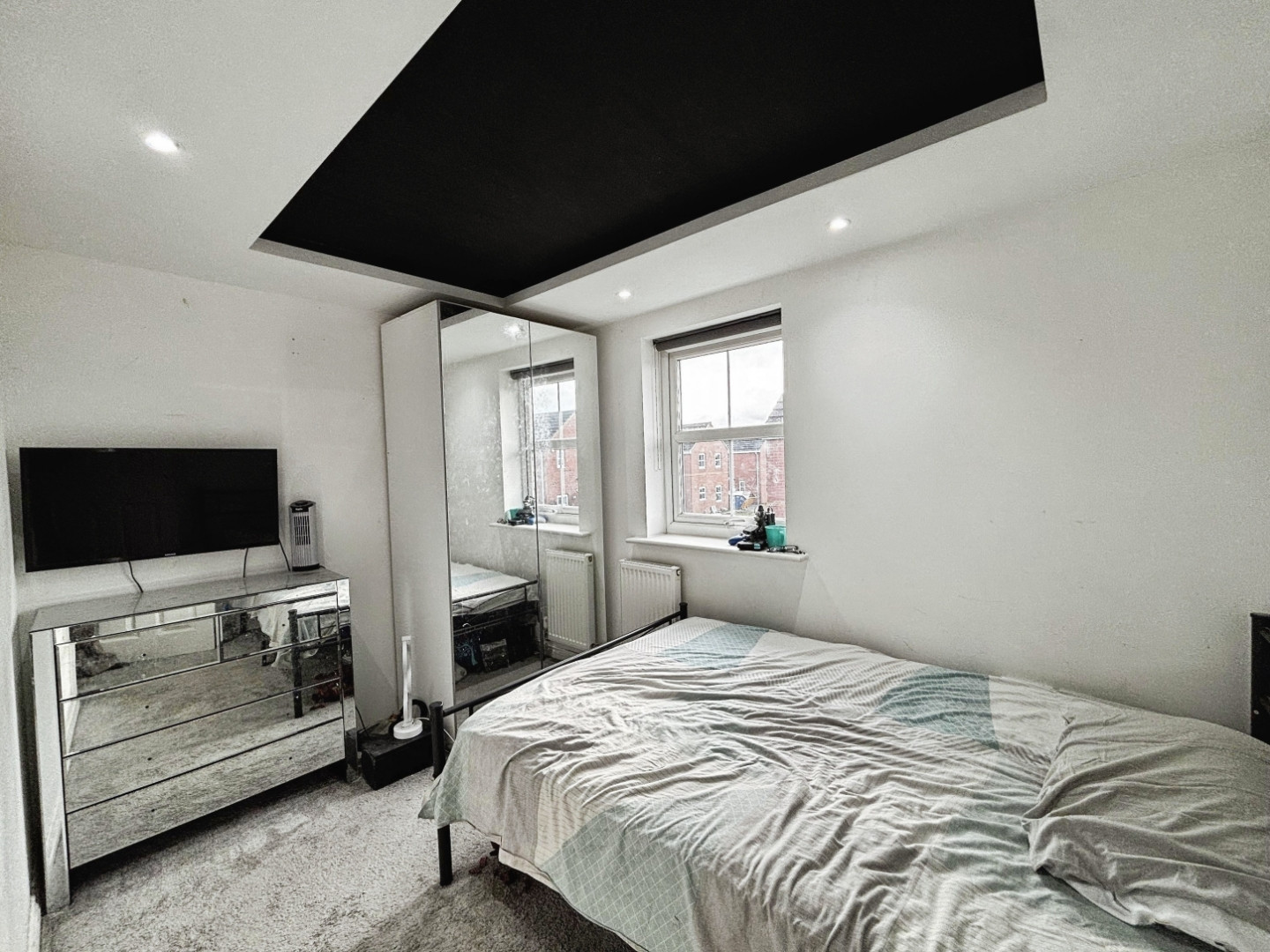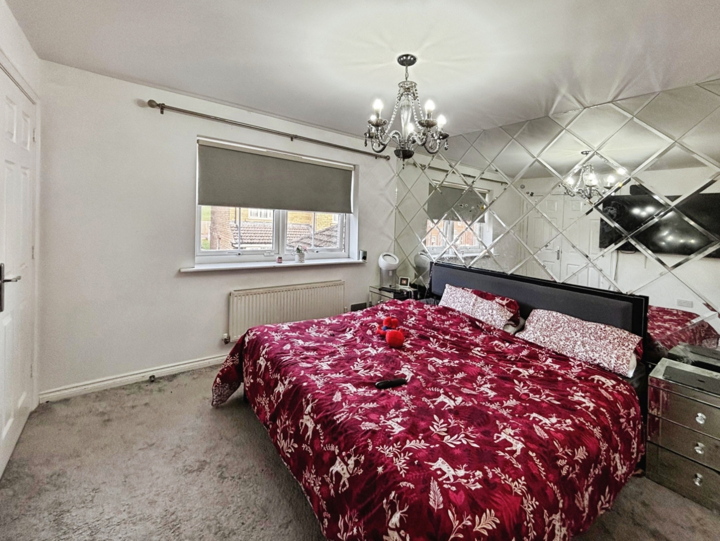 UPVC double glazed widow, central heating radiator, fitted wardrobes, tv point and wall mirroring to one full wall
