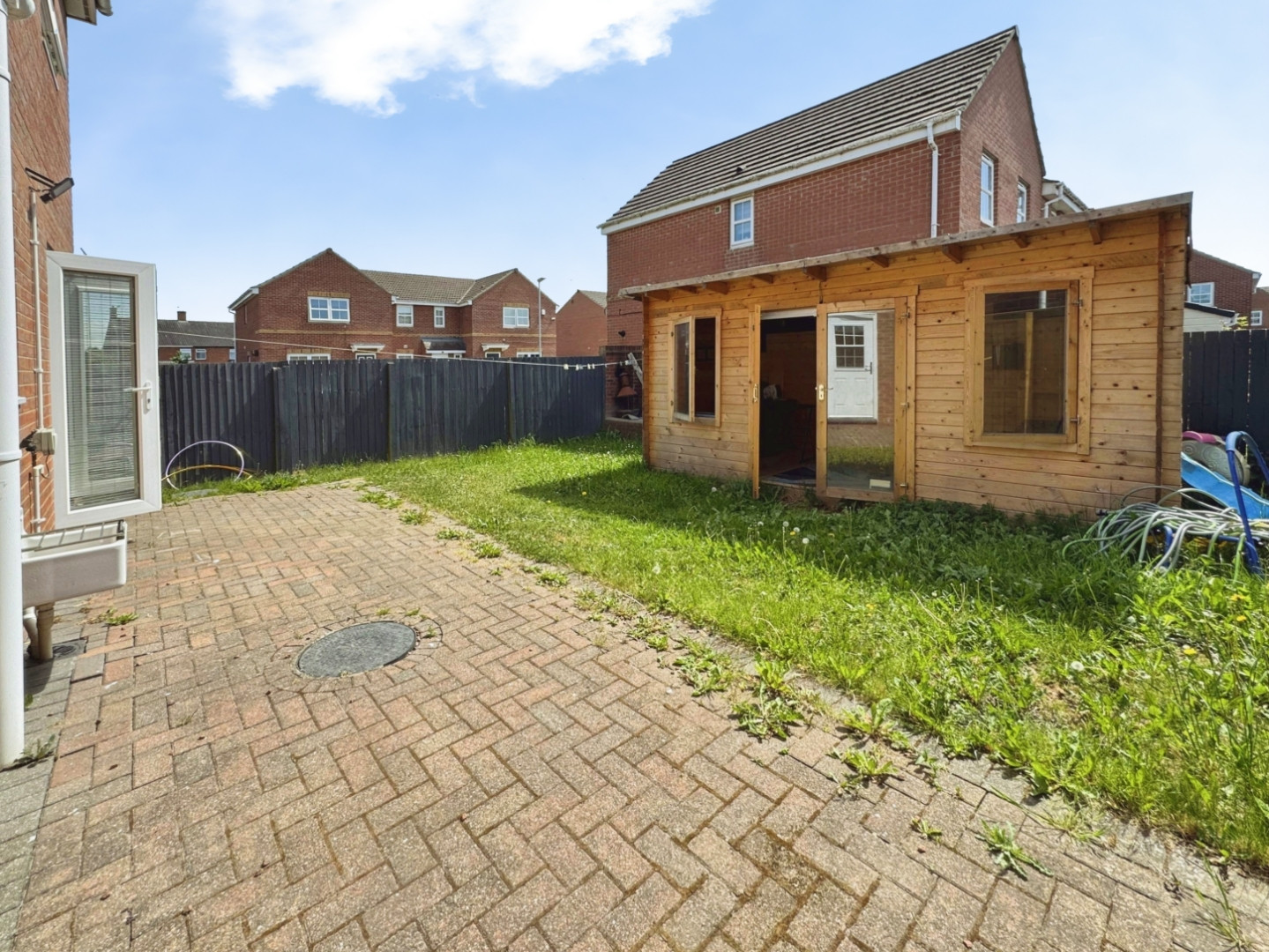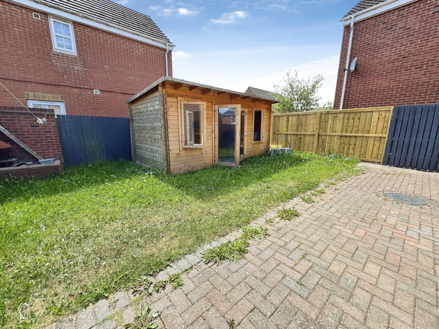 Immediately to the front of the property there is a driveway providing off street car parking for two vehicles which leads to an integral garage with up and over door, power and lighting. Whilst to the rear of the property there is an enclosed garden which is lawned with patio are, external lighting. There is a large timber summerhouse which has solar panels on the roof, power and lighting.