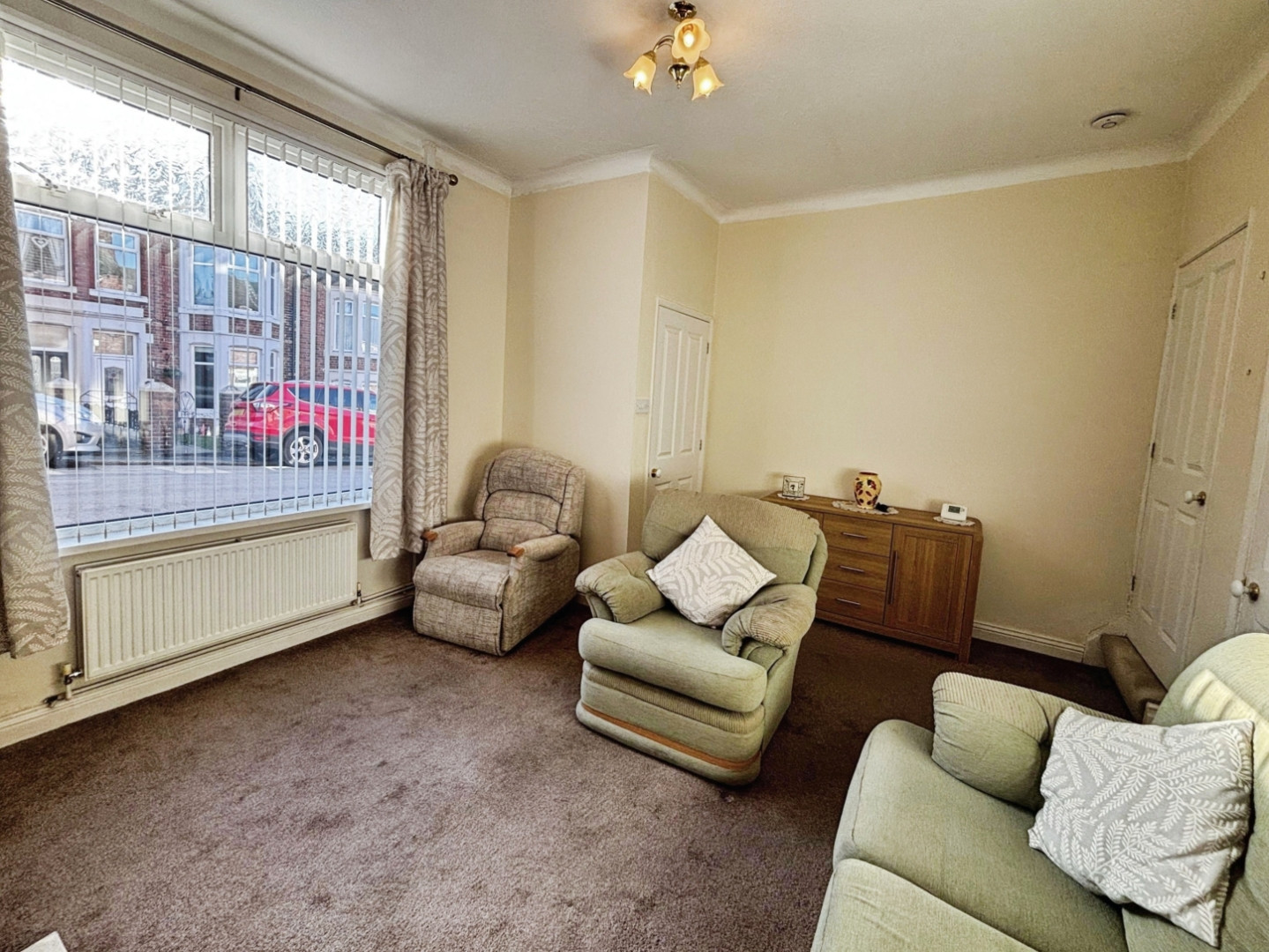 Having central heating radiator, feature fireplace housing electric fire and upvc double glazed window to front.