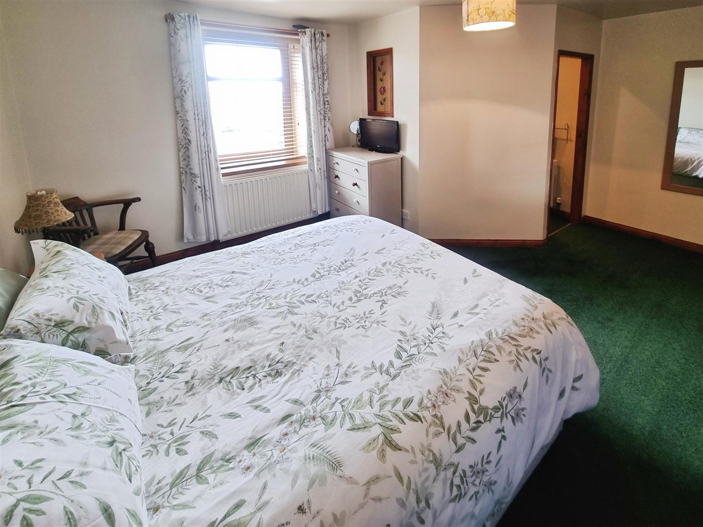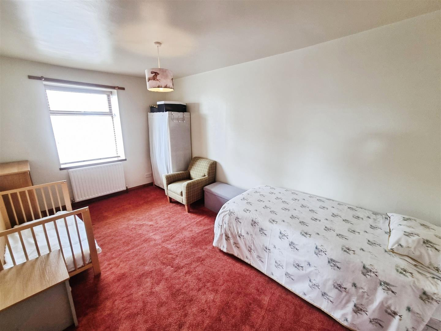 Central heating radiator and uPVC double glazed window to front.