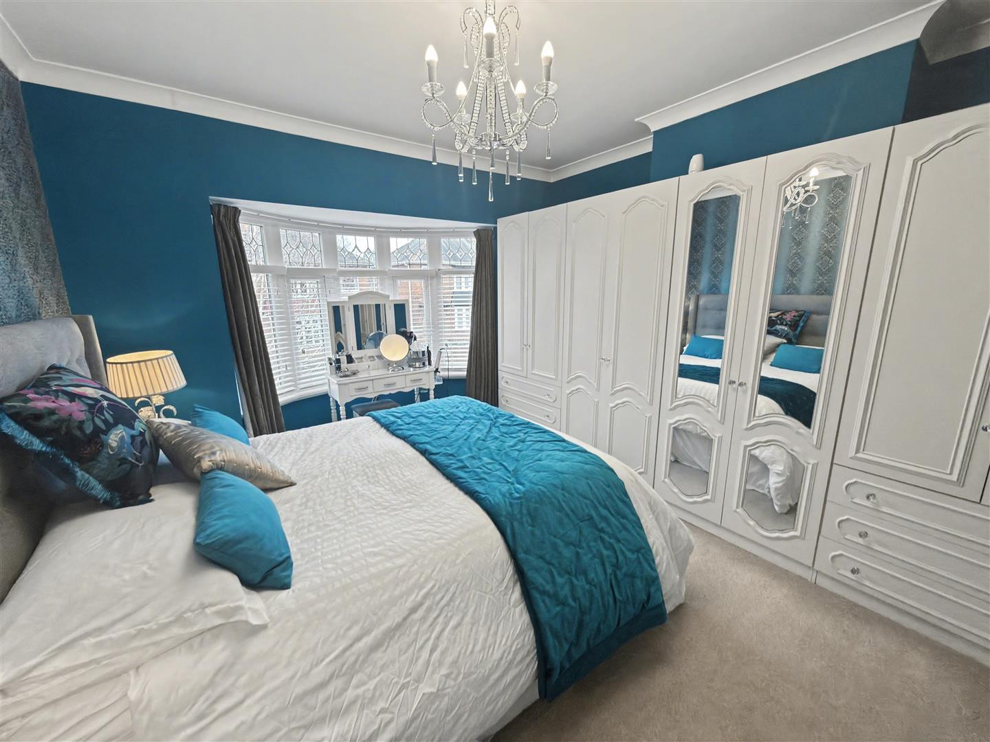 Upvc double glazed bow window to front, fitted wardrobes and radiator.