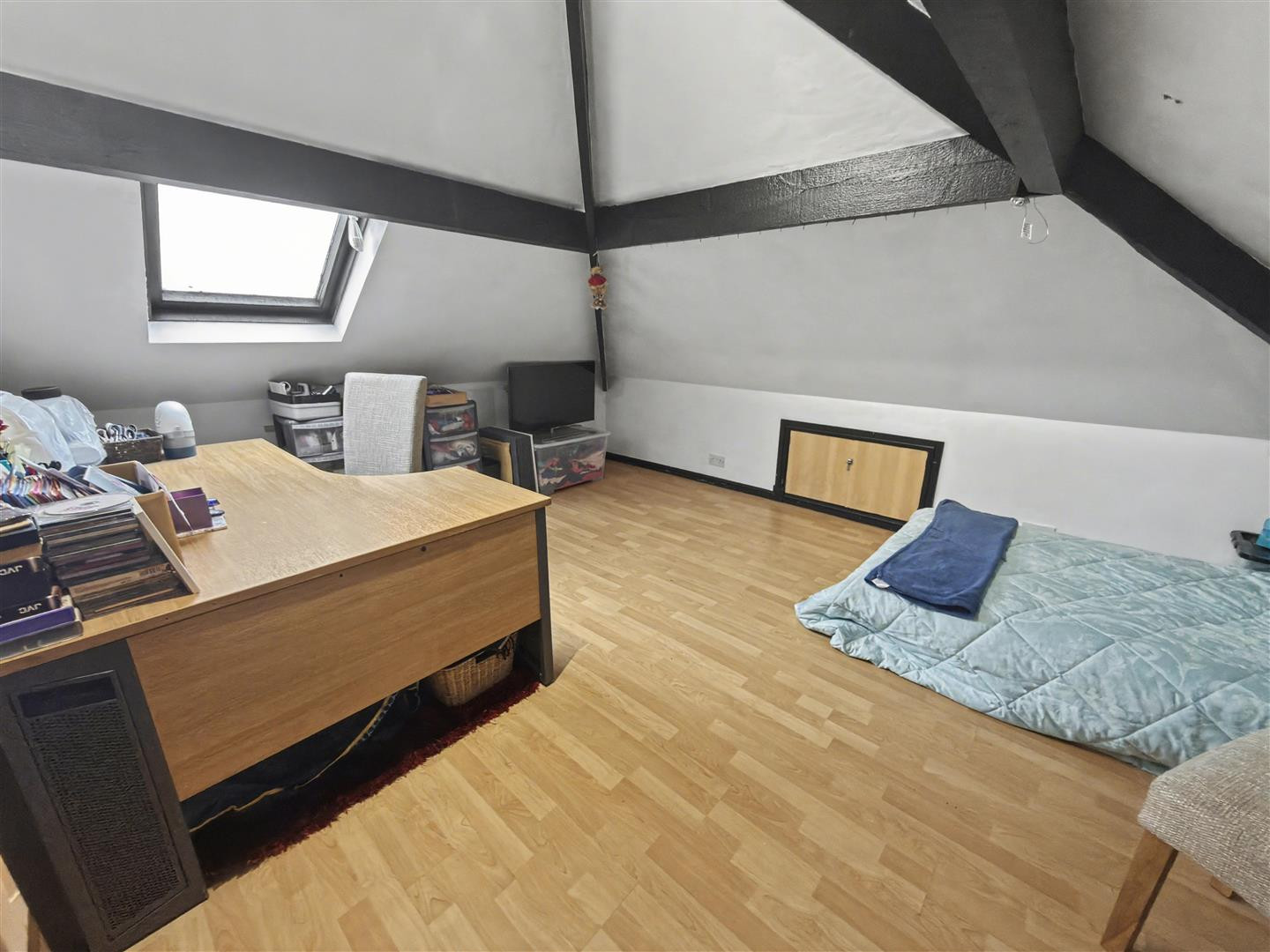 With skylight window to rear and storage into eaves.