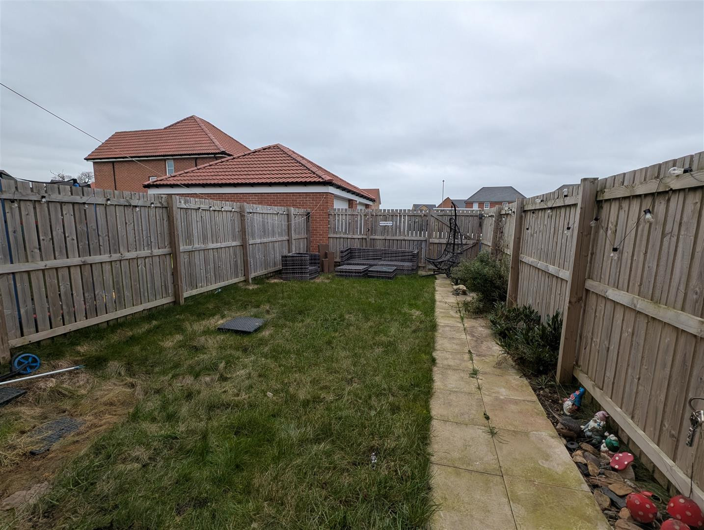 To the front is a pathway and wraparound garden arear, mainly laid to lawn. Access to driveway, garage and the rear of the property.