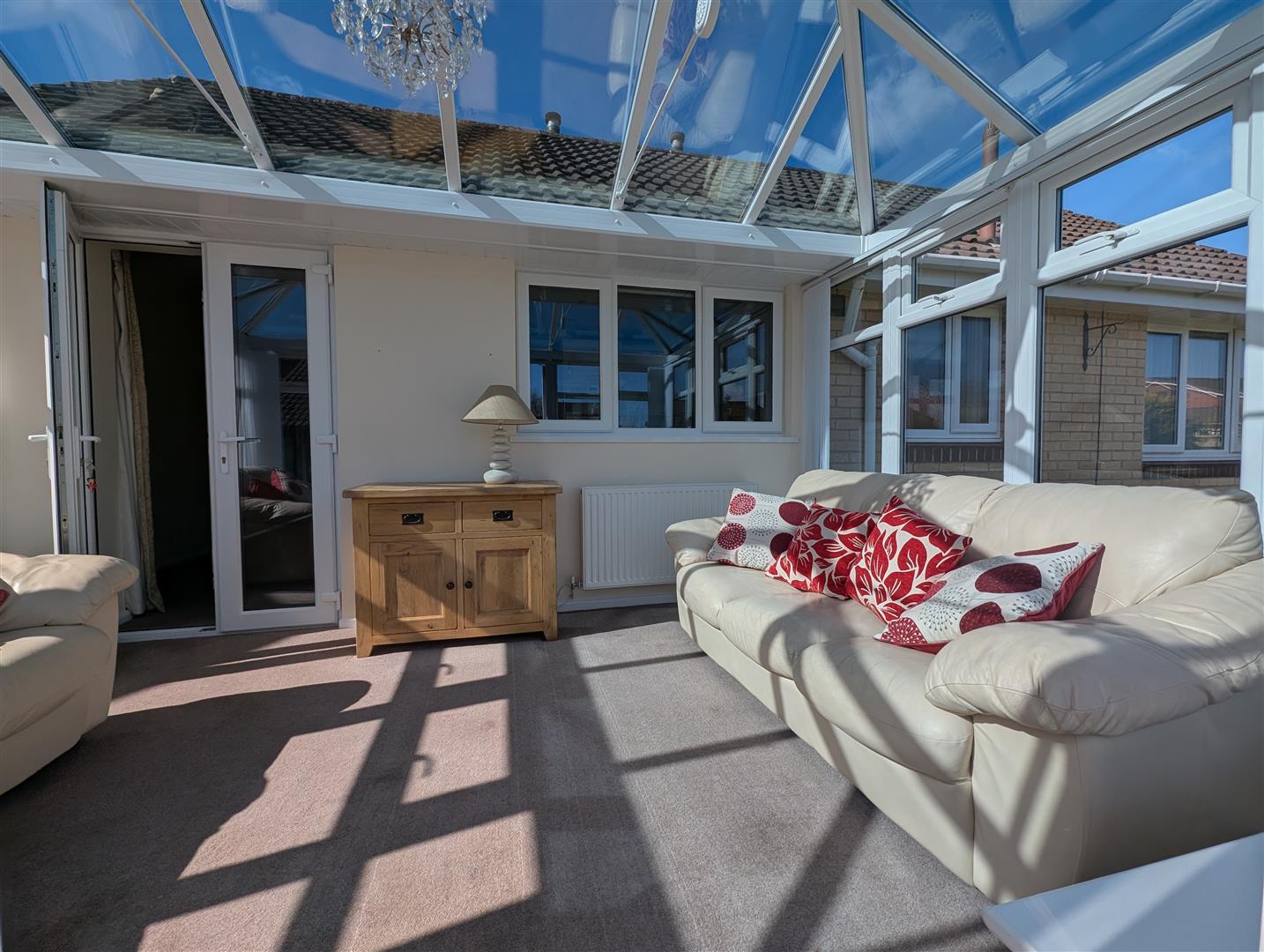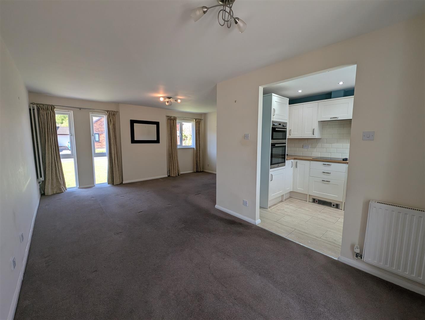 Two Upvc double glazed, full height windows to front with additional third, eye level window. Double door to conservatory and open access to kitchen. Two radiators - one being vertical.