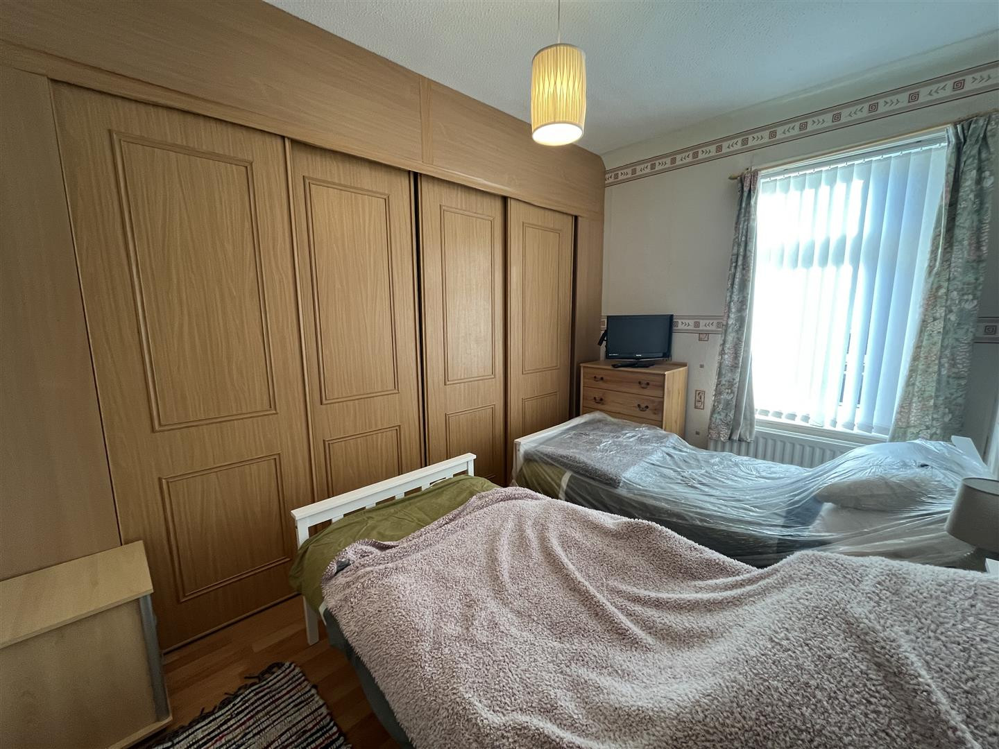 With laminate wood flooring, fitted four door wardrobe, central heating radiator and UPVC double glazed window to front.