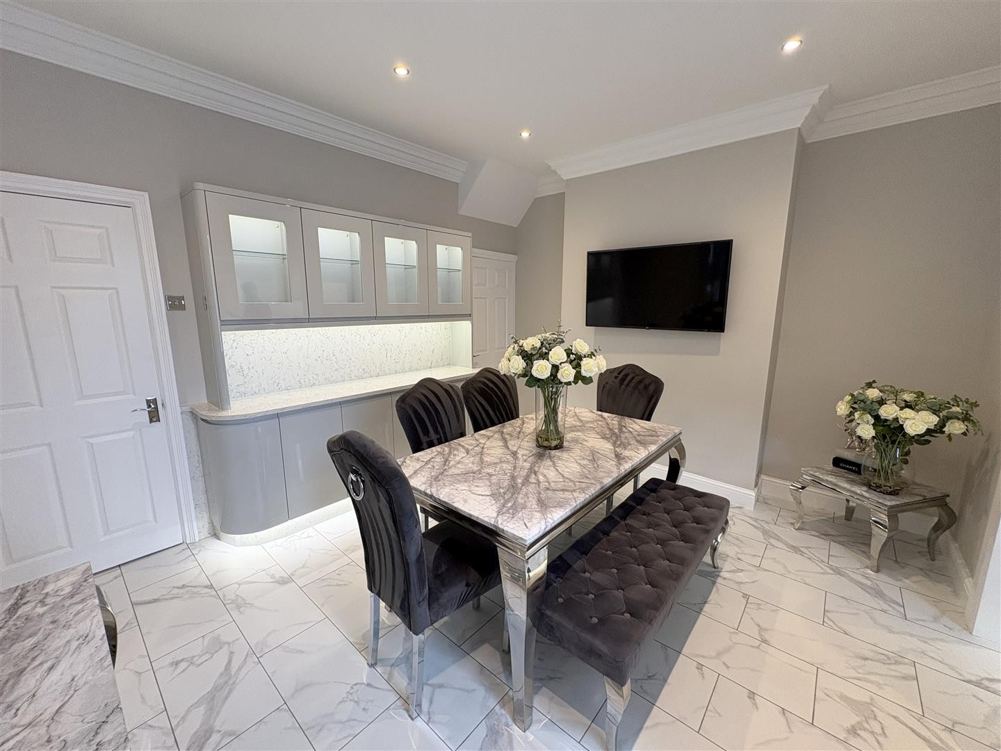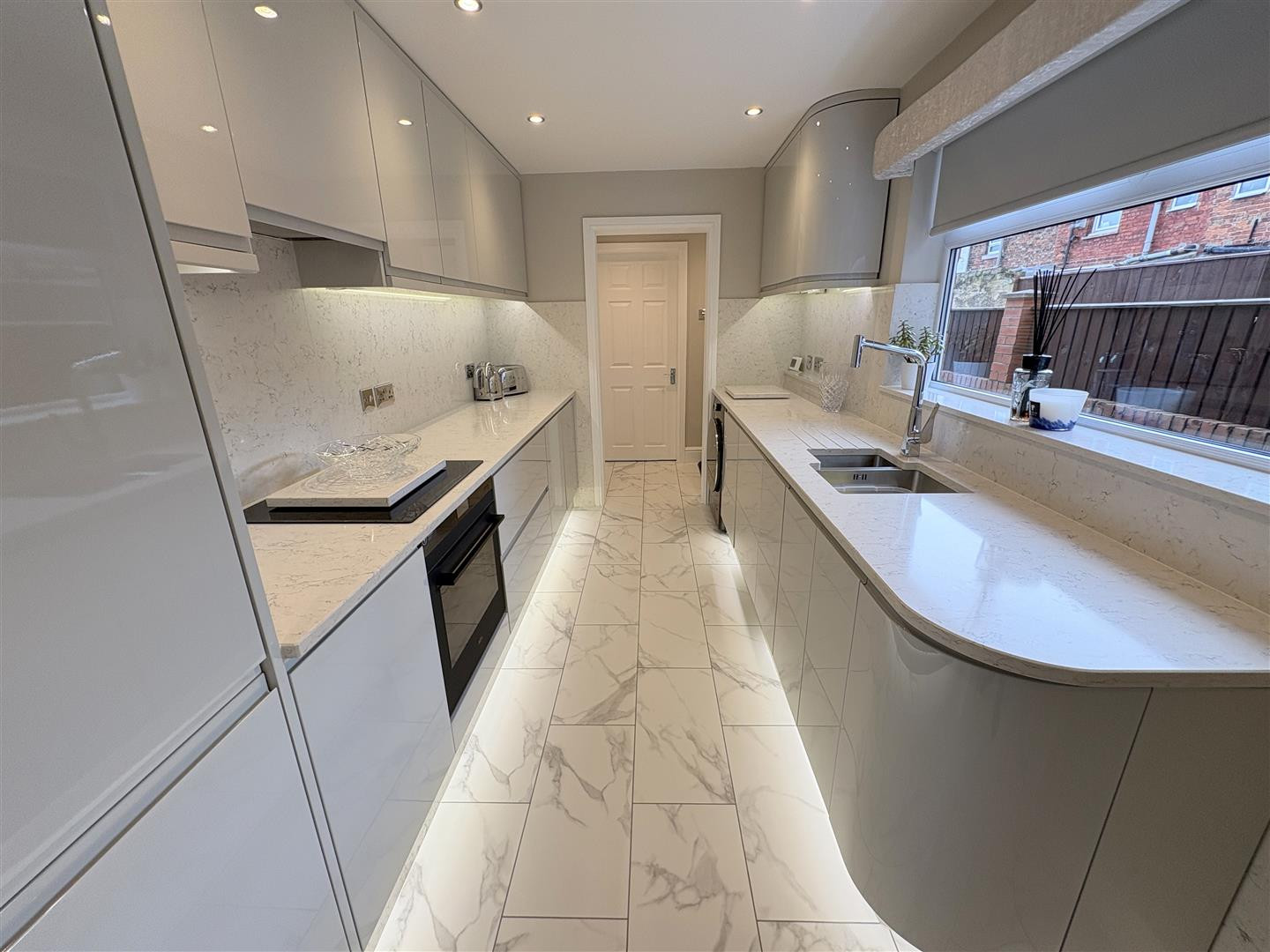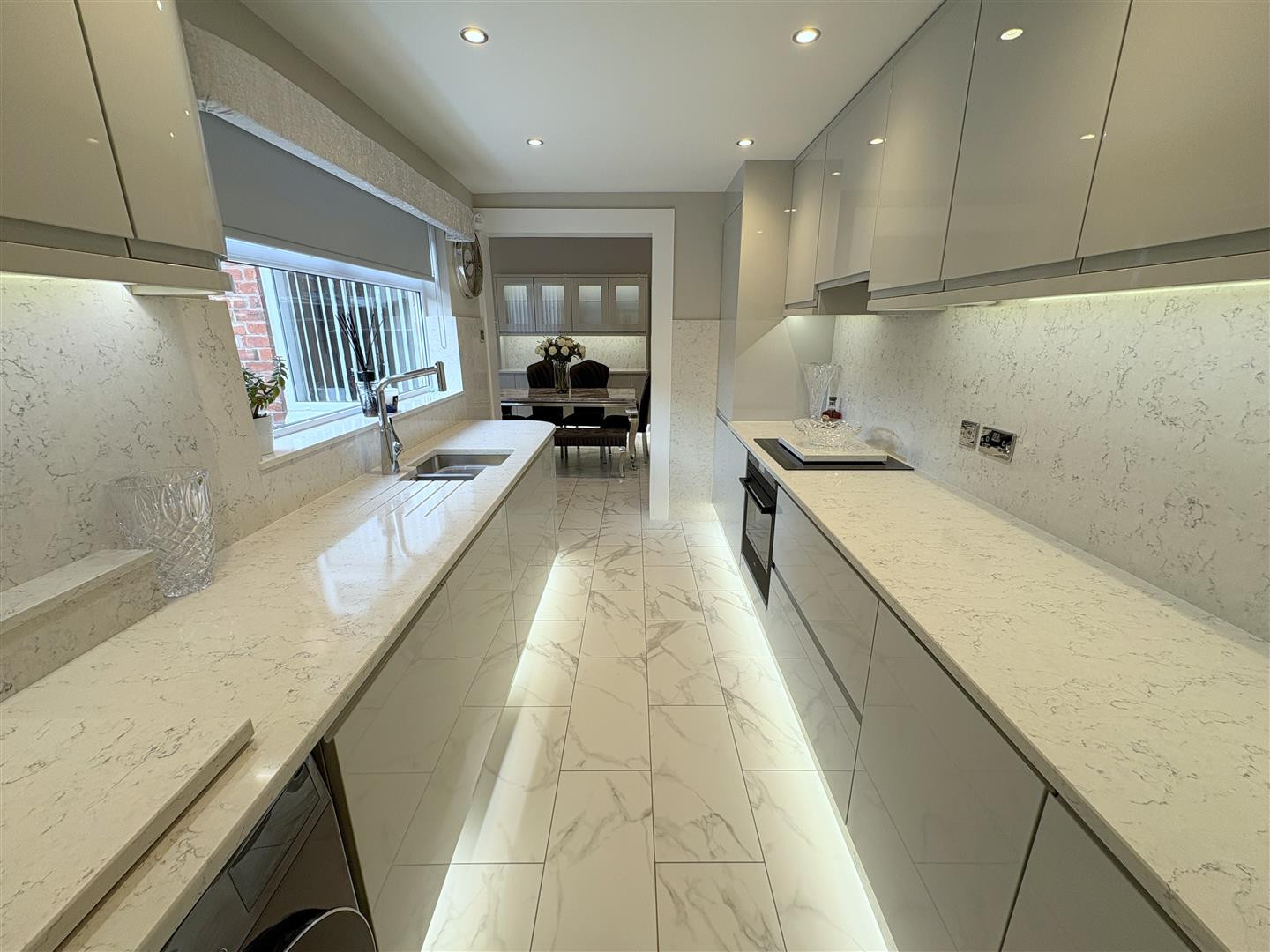 Situated to the rear of the property, with a comprehensive, modern range of wall and floor units, contrasting work surfaces, tiled flooring, and access leading into the rear lobby. The rear lobby has the rear back door