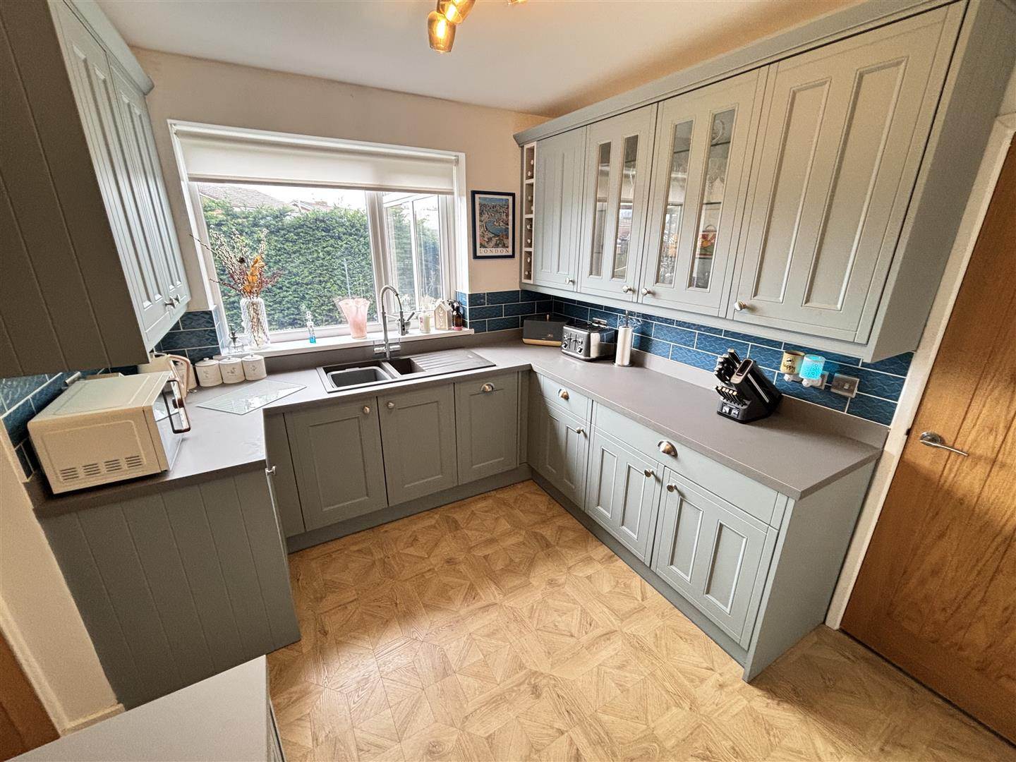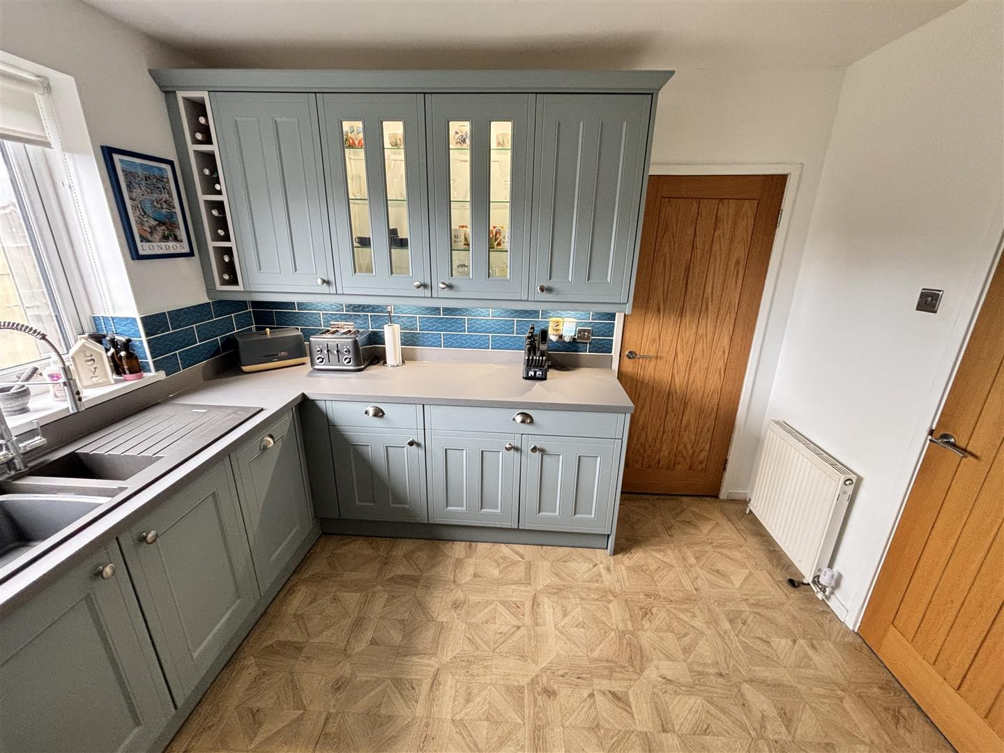 Refitted with a comprehensive range of wall and floor units having contrasting worktops incorporating a sink and drainer unit with mixer tap, a cooker with extractor over and integrated dishwasher. Further features include a UPVC double glazed window to the rear, feature lighting and a radiator.