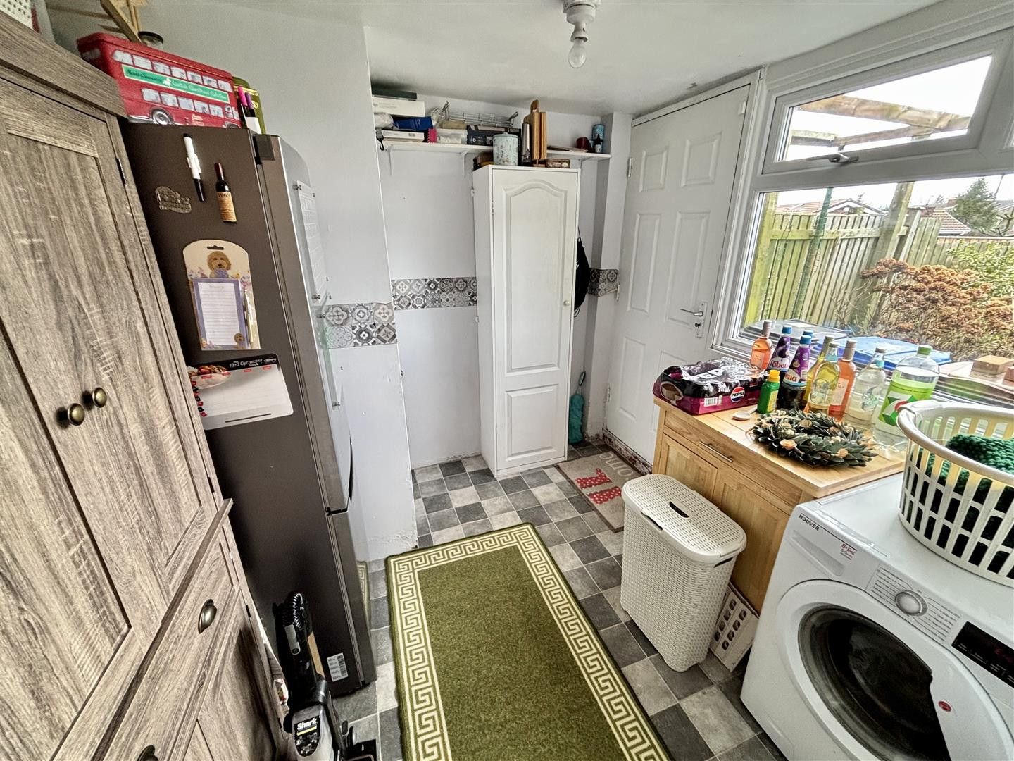 Fitted with a storage cupboard, plumbing for a washing machine and fridge/freezer space. Having a UPVC double glazed window and door to the rear garden.