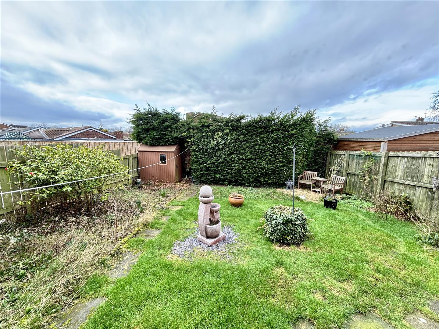To the front of the property is a garden and a driveway for off street parking with electric car charging point, whilst to the rear is an enclosed, west facing lawned garden with patio area and shed.