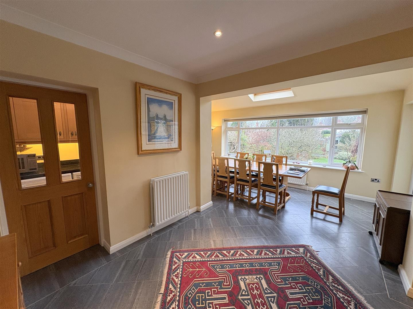 Practicality is equally well considered, with a ground floor utility room and WC complementing the already substantial accommodation, ensuring day-to-day living is both comfortable and convenient. Set back from the main road behind its own private grounds, the property enjoys a sense of refinement and privacy. The expansive driveway offers ample parking for multiple vehicles and even incorporates a thoughtfully designed turning area.