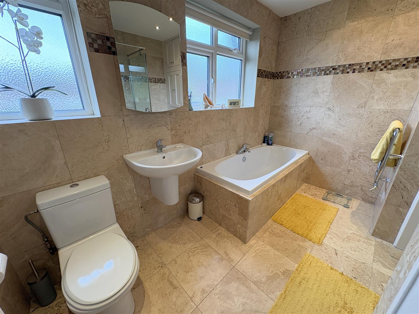 With a modern bathroom suite situated to the rear, comprising a panelled bath, a shower set within a cubicle. pedestal wash hand basin, and low-level WC, with fully tiled walls.