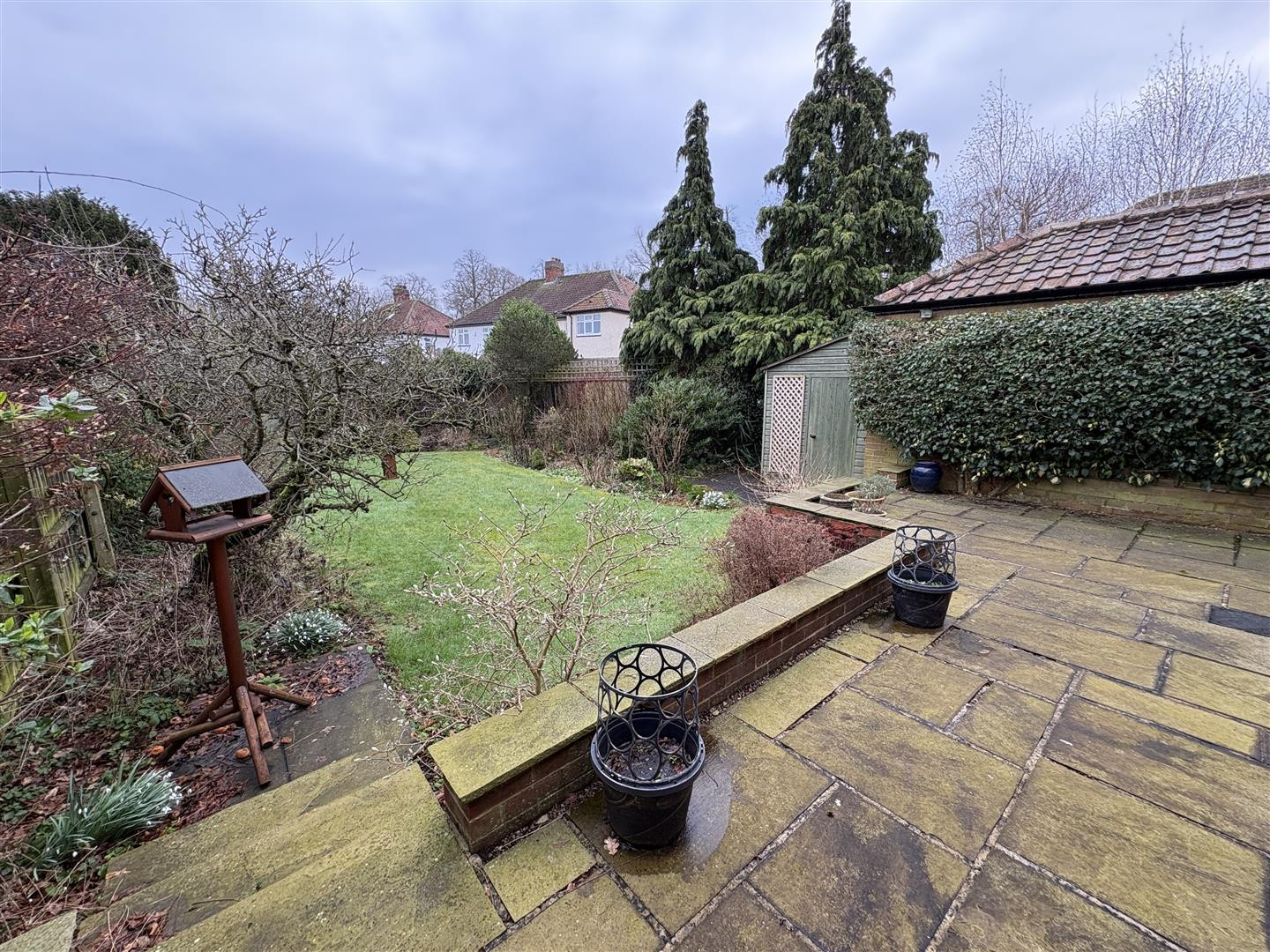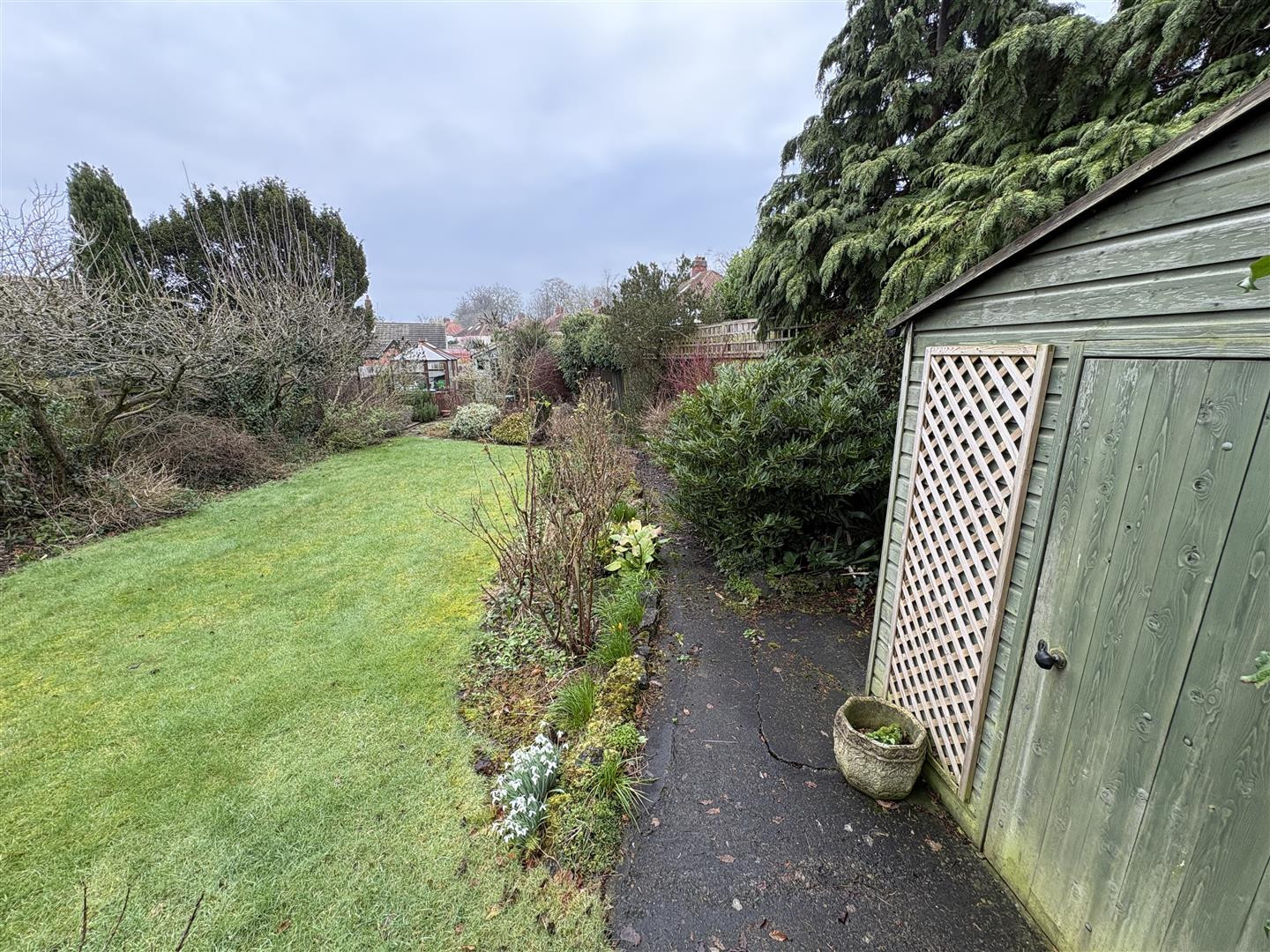The home is situated on a tree-lined road and features a mature front garden with borders and shrubbery, along with excellent parking to the front leading to a single garage. To the rear, there is a well-cared-for, large landscaped garden with gated access.
