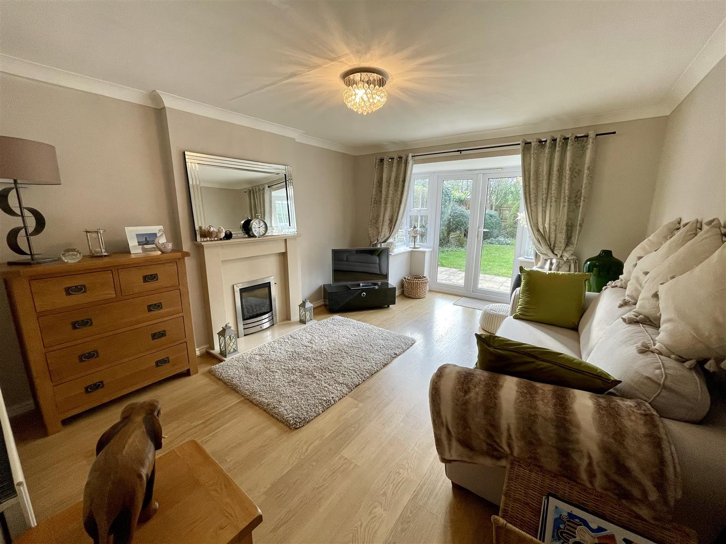 Upvc double doors to rear, coving to ceiling, sandstone effect fireplace housing remote control living flame gas fire. Laminate flooring and radiator.