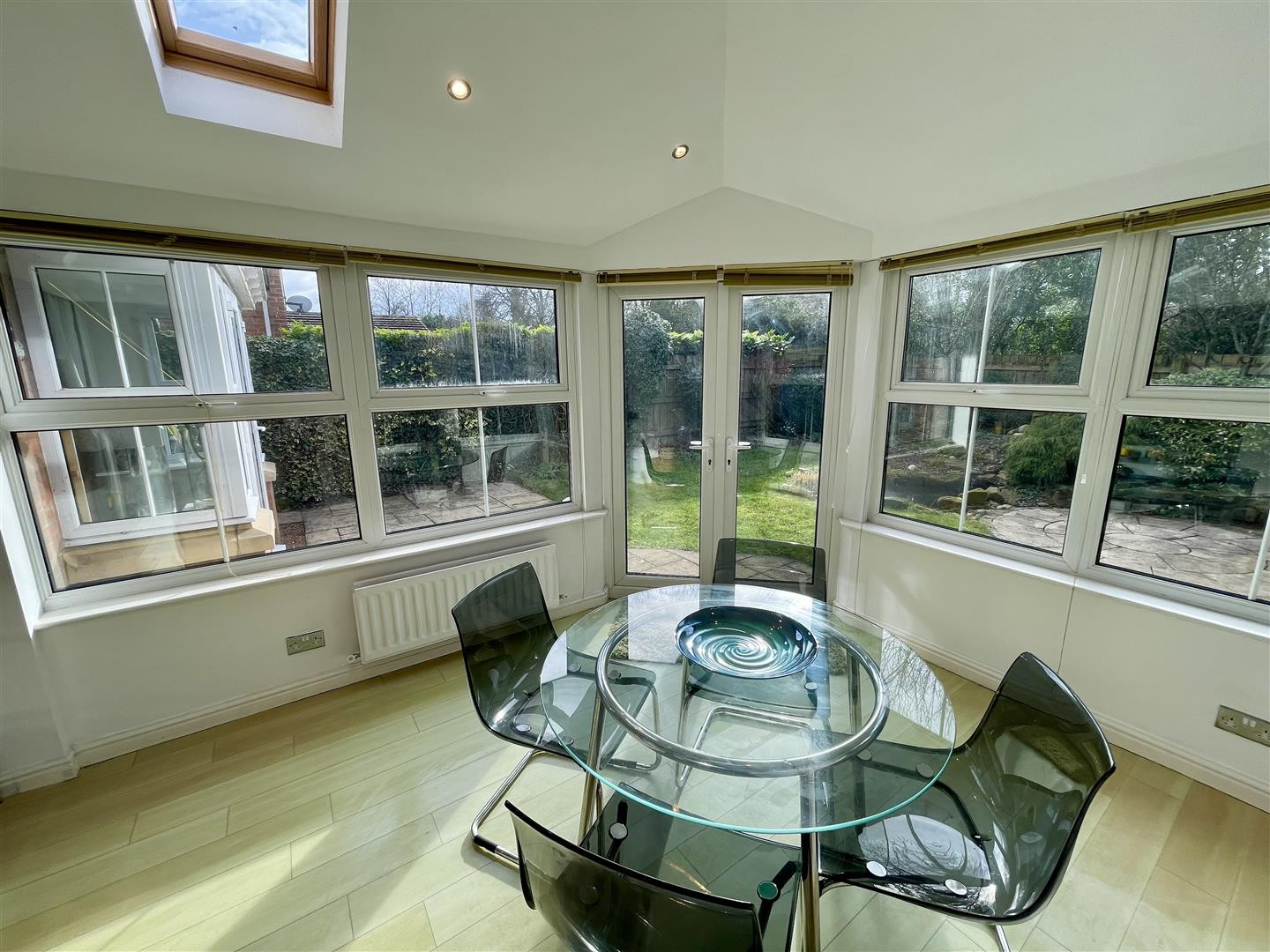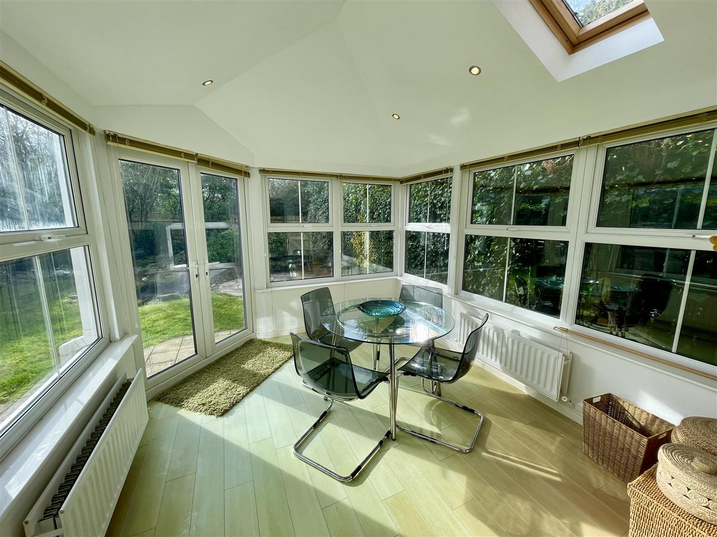 Upvc double glazed with half wall and double doors to side/rear, vaulted ceiling with two Velux windows, spotlights to ceiling and two radiators.