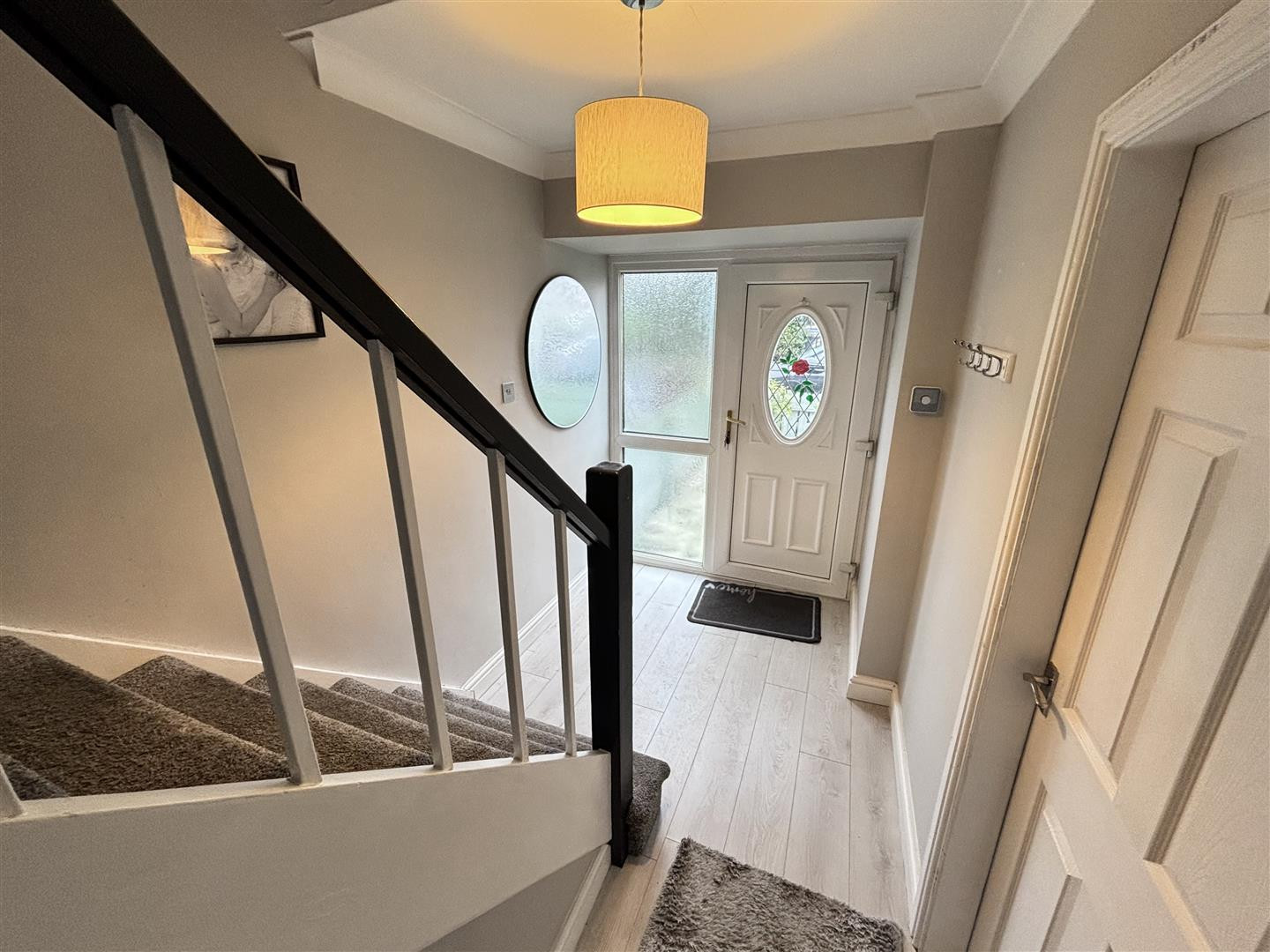 Welcoming hallway entered via UPVC double glazed door. Having stairs leading to the first floor and laminate flooring.