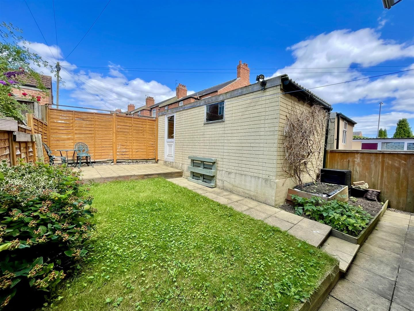 To the rear there is an enclosed split level garden which is mainly laid to lawn with patio area and raised beds. Gated access to rear lane and access to the single garage.