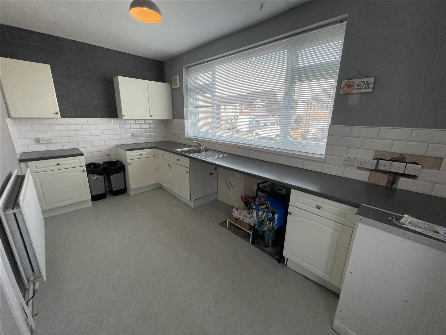 Upon entering, you are welcomed by an entrance vestibule that leads into a spacious lounge. This room features a lovely fireplace creating a warm and cosy atmosphere perfect for relaxation. The fitted white kitchen/dining room is providing a functional space for culinary pursuits and family gatherings.