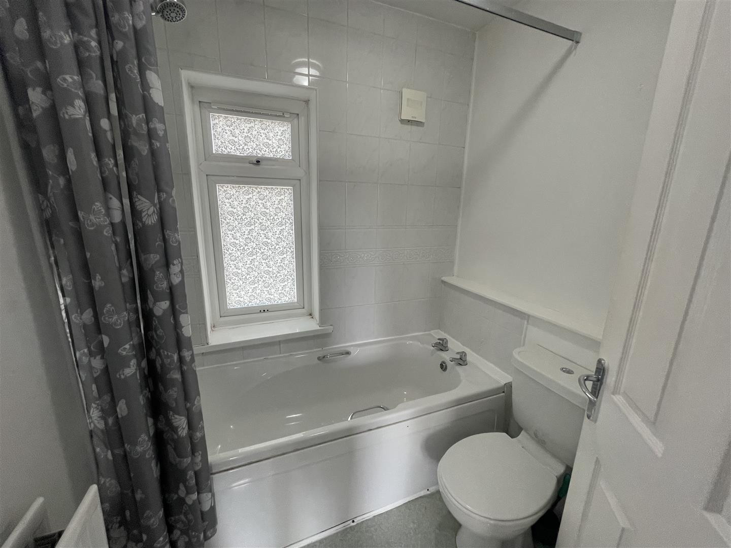The first floor comprises two generously sized bedrooms, offering ample space for rest and personalisation. A fitted white family bathroom, complete with a WC and shower, completes the upper level, ensuring convenience for all residents.