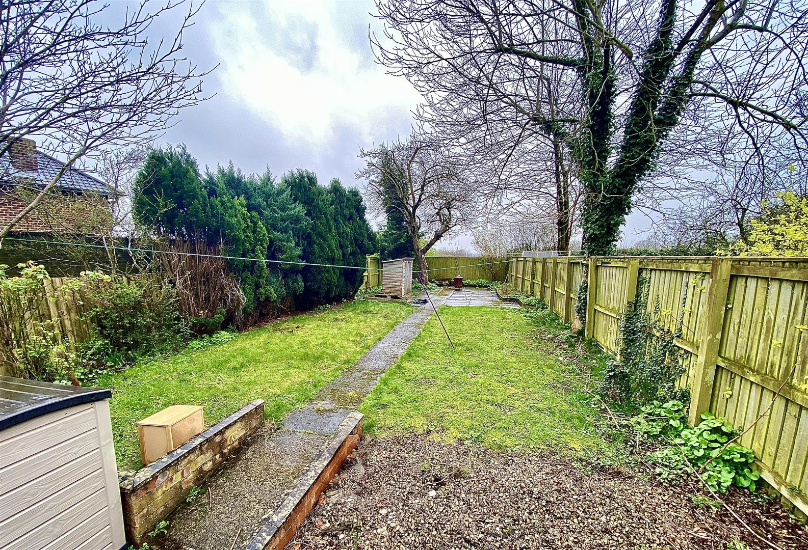 To the side of the property is a large enclosed garden with lawn and patio area. There are double gates which provide access for off street parking.