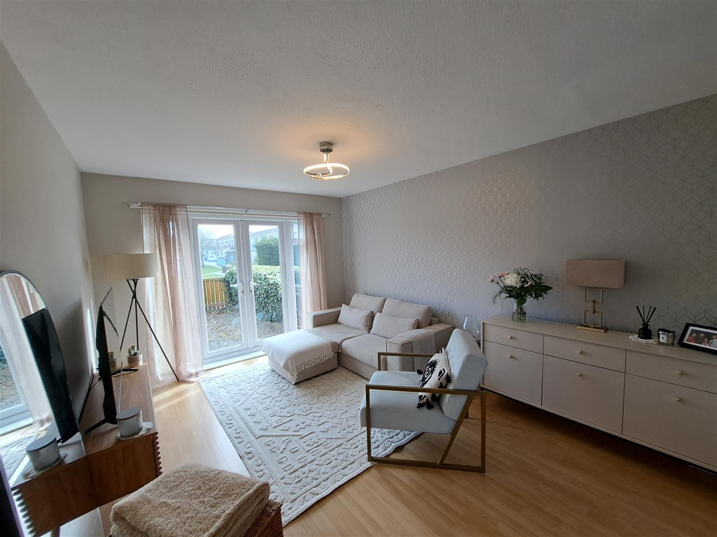 Well presented lounge area with UPVC double glazed french doors leading to garden, laminate flooring and radiator.