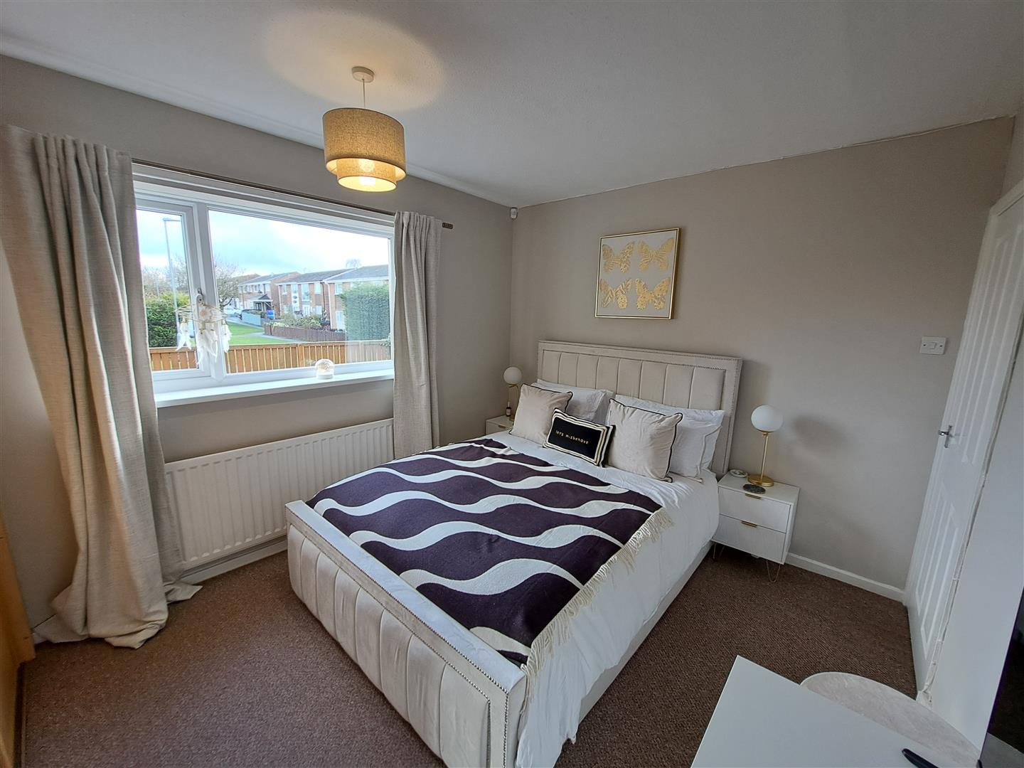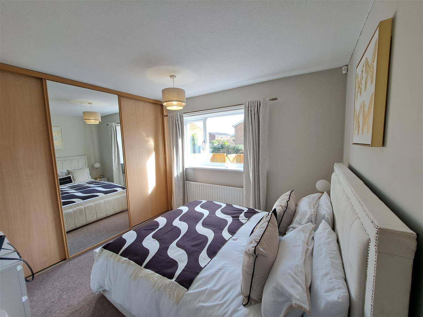 Double bedroom with fitted wardrobes, radiator, UPVC double glazed window.
