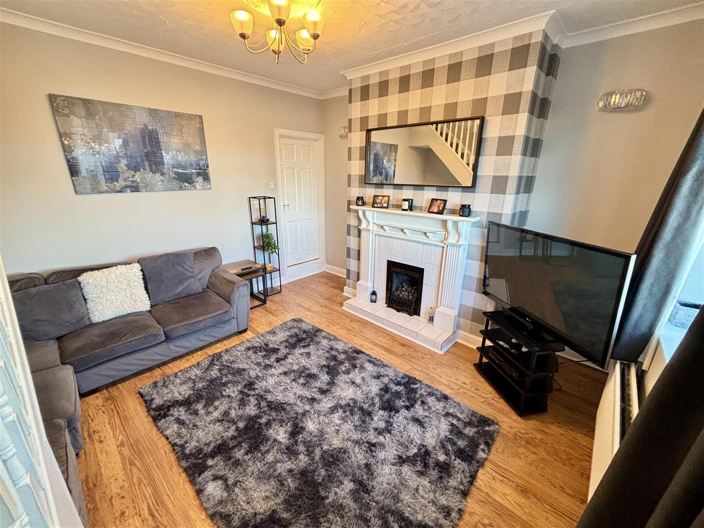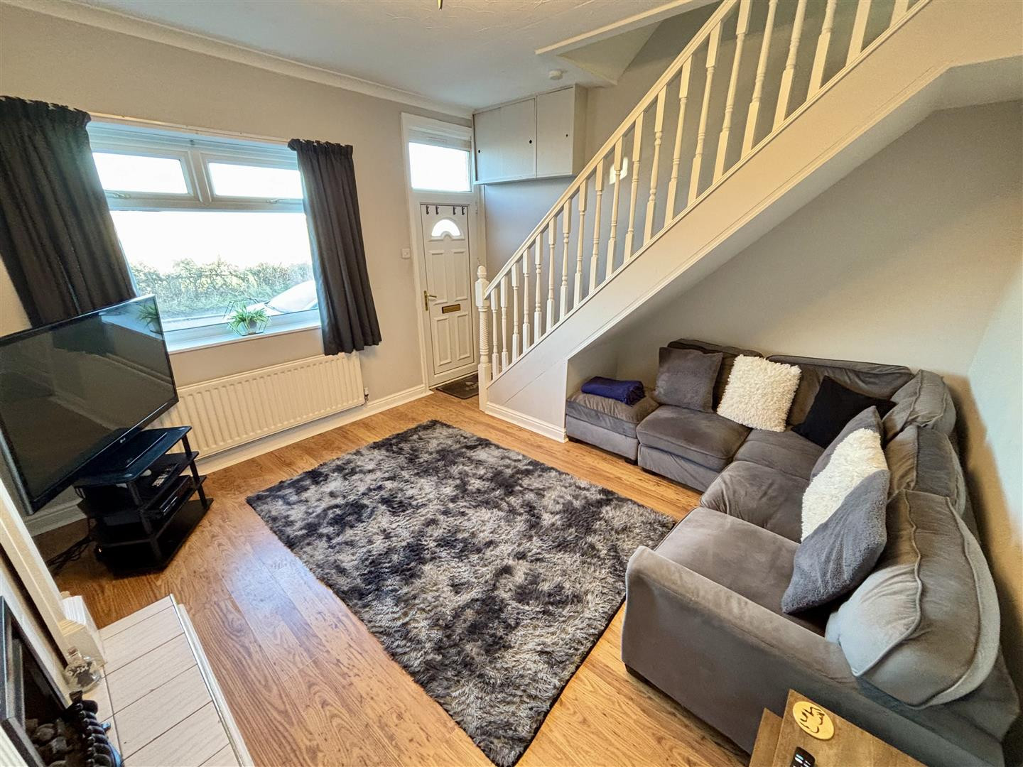 Entered via UPVC door. Having a UPVC double glazed window to the front, feature fireplace housing a gas fire, laminate flooring, radiator and staircase leading to the first floor.