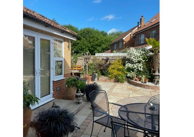 The west-facing rear garden is a delightful outdoor space, perfect for enjoying the afternoon sun and hosting summer barbecues. This garden offers a serene retreat, ideal for unwinding after a long day or for children to play safely.