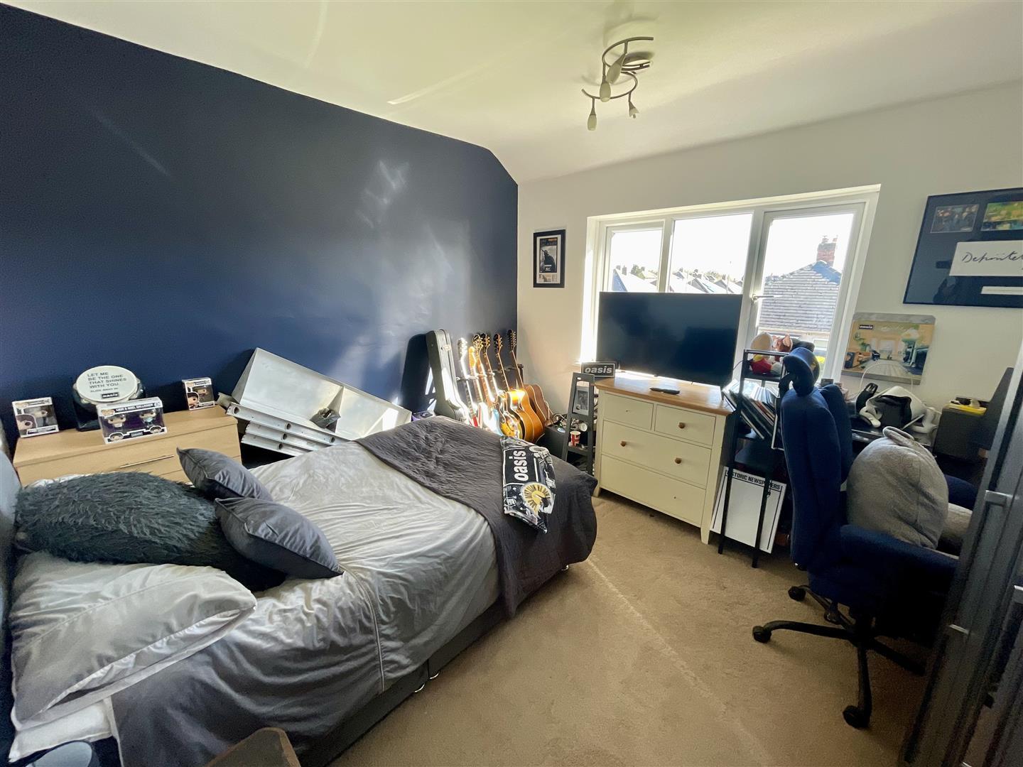 Upvc double glazed window to rear, fitted wardrobes with sliding doors and radiator.