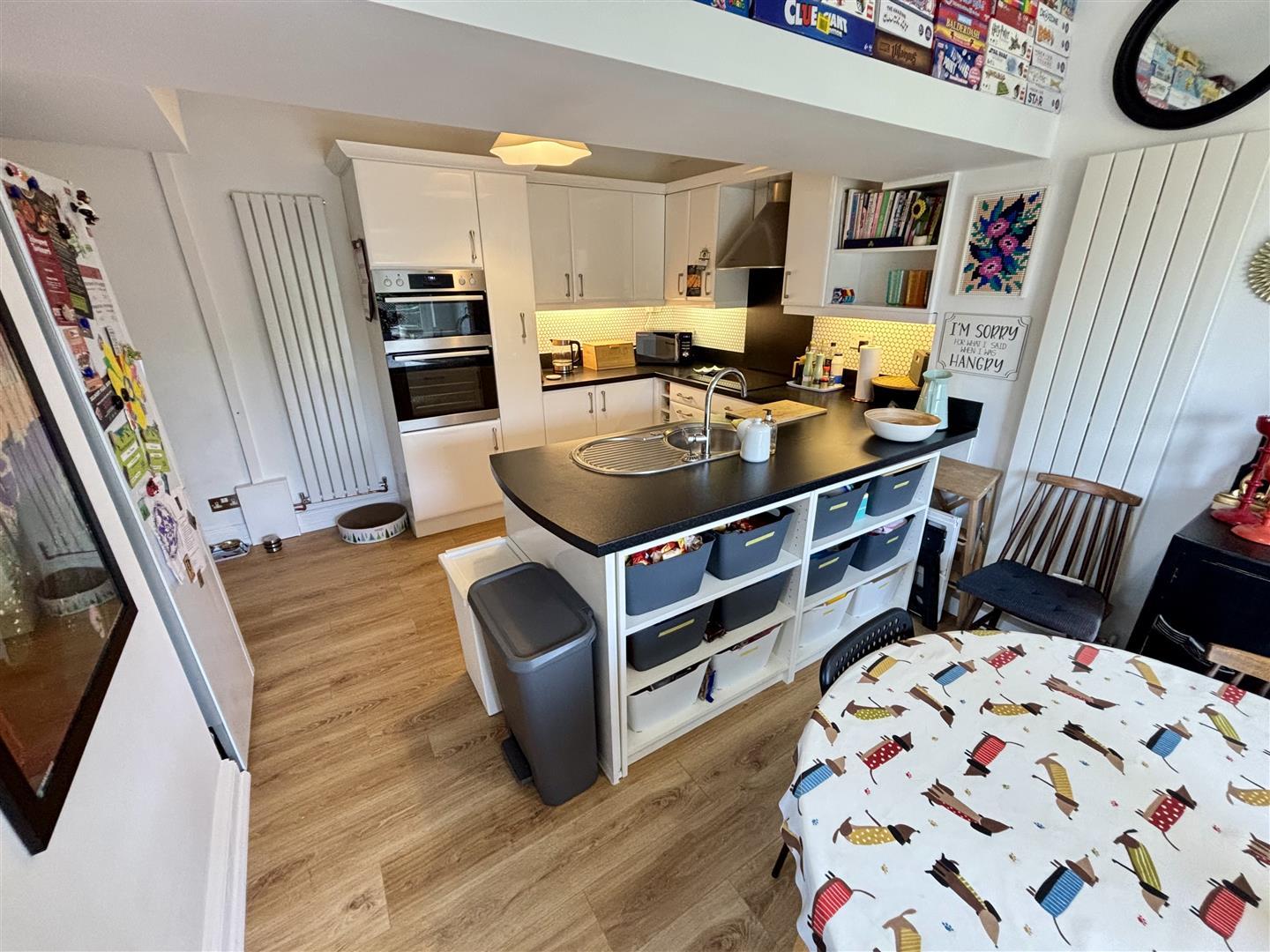 The kitchen is fitted with a comprehensive range of units having contrasting worktops incorporating a stainless steel sink and drainer unit with mixer taps, built in double oven, hob with extractor over, an integrated dishwasher, plumbing for a washing machine and fridge/freezer space. Further features include a breakfast bar and wood laminate flooring.