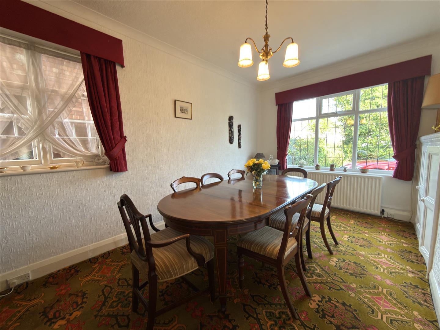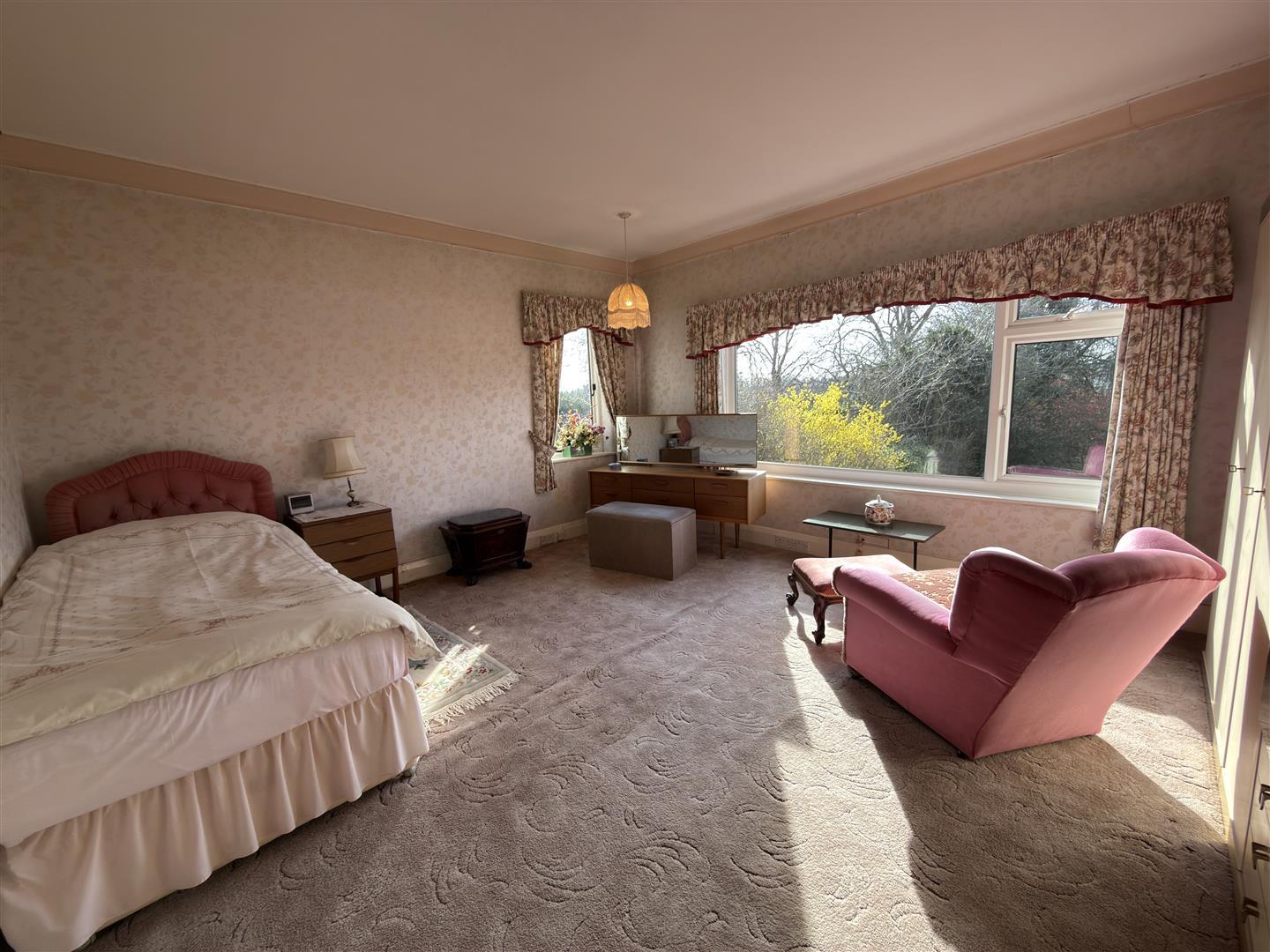 The home stands on a prime plot with excellent frontage, with a sweeping driveway allowing parking for 3/4 cars, leading to a single garage. To the rear of the home, there is a large well cared for garden, which is mainly laid to lawn with shrubbery.