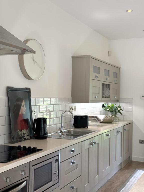 Large windows flood the space with natural light and provide stunning views of the surrounding countryside. A private garden allows you to soak in the tranquil atmosphere with your morning coffee or an evening glass of wine. The property comes with parking, complimentary Wi-Fi and all the amenities you need for a relaxing stay, as well as all utilities being included.