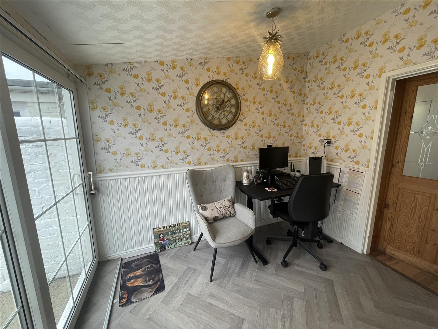 The kitchen is a true delight, featuring a contemporary Beech effect design complete with built-in hob, oven, and extractor. An additional office space is thoughtfully included, providing a perfect nook for those who work from home or require a quiet study area.