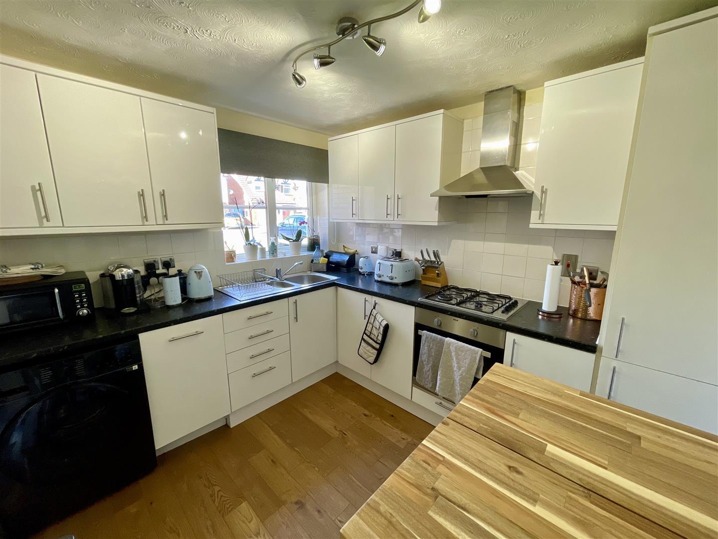 Upvc double glazed window to front, fitted with wall, base and drawer units, stainless steel sink with mixer tap, four ring gas hob with extractor over and oven. Integrated fridge freezer, dishwasher and space for a washing machine. There is also space for a small bistro style table.