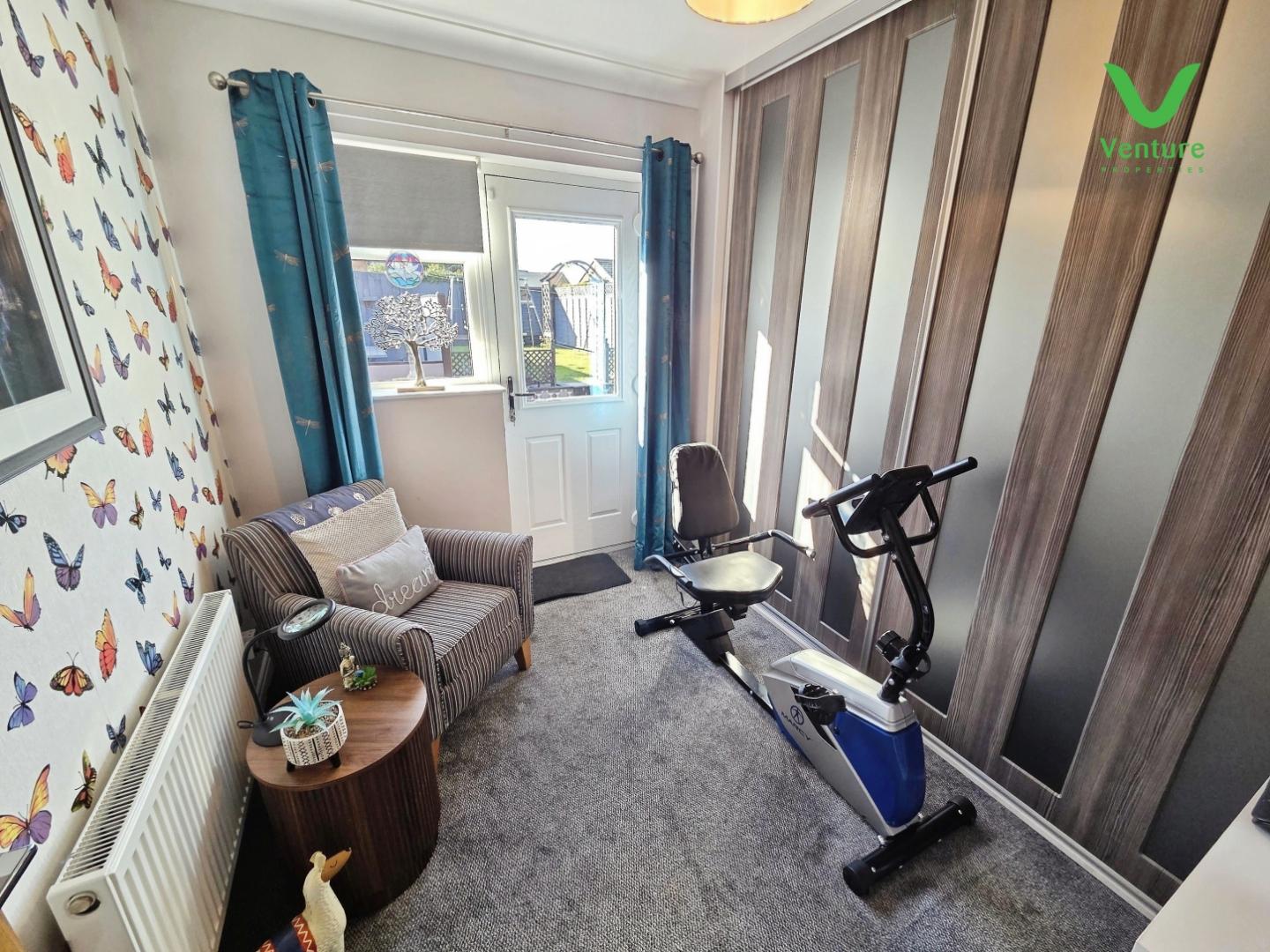 With fitted wardrobes to one wall, central heating radiator and a upvc double glazed rear entrance door opening out into the rear garden.