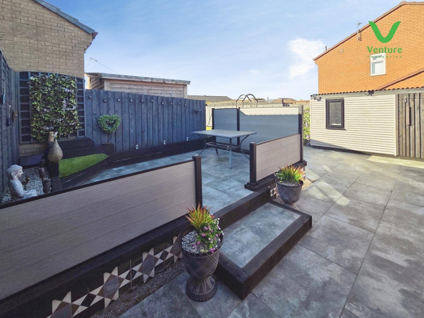 Set on a good-sized plot, the bungalow boasts a surprising rear garden that has been thoughtfully landscaped and features a lovely patio area—perfect for relaxing or entertaining guests. The property sits in a quiet cul-de-sac, peace and privacy assured. A garage and driveway provide ample parking and valuable storage options for added convenience.