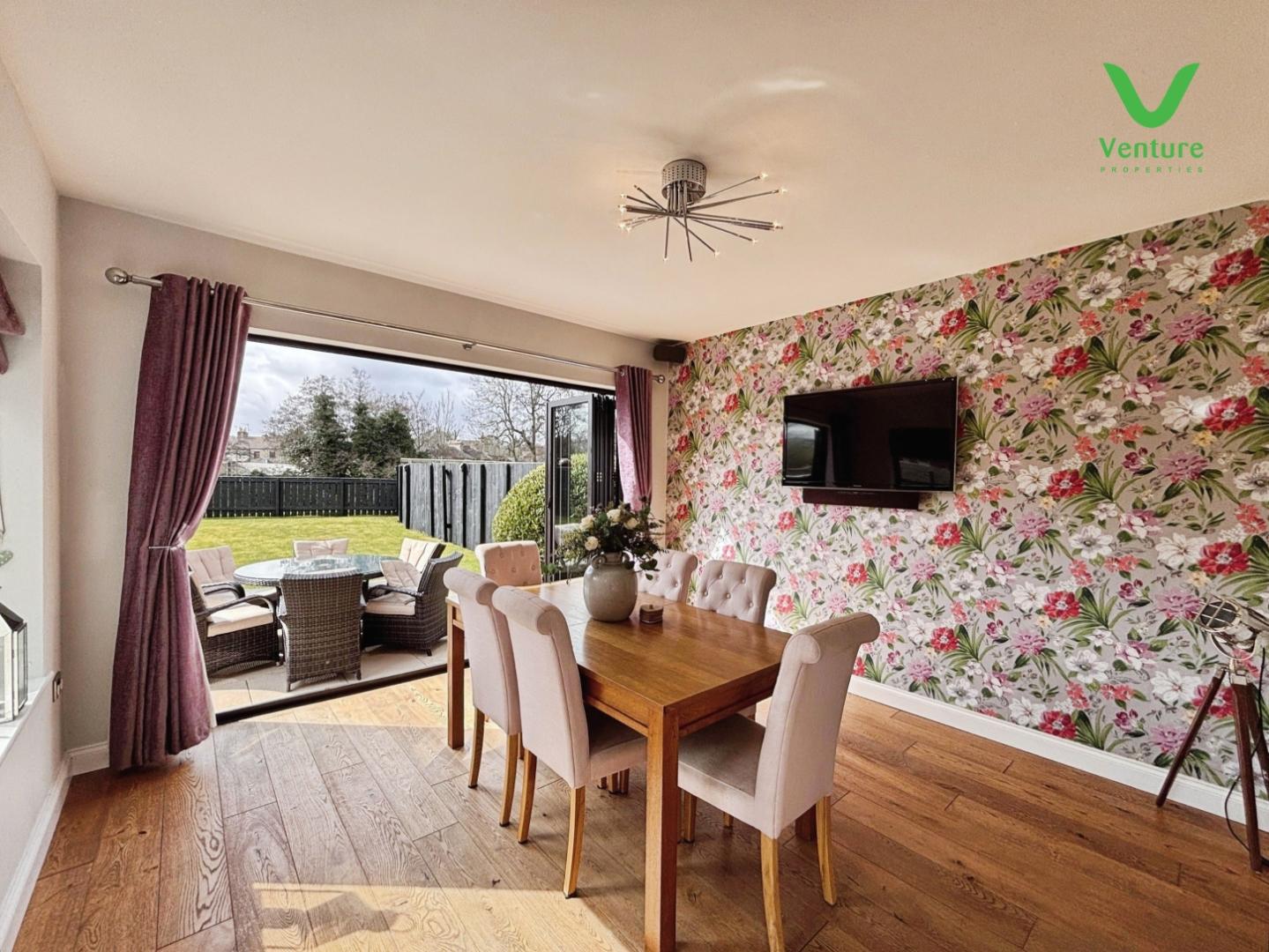 The country-style fitted kitchen is thoughtfully designed with both style and practicality in mind, opening onto a spacious garden room with an open plan layout, perfect for family gatherings or entertaining friends. Upstairs, the luxurious family bathroom provides a touch of indulgence, complete with a free-standing bath and a separate rain shower for ultimate relaxation.