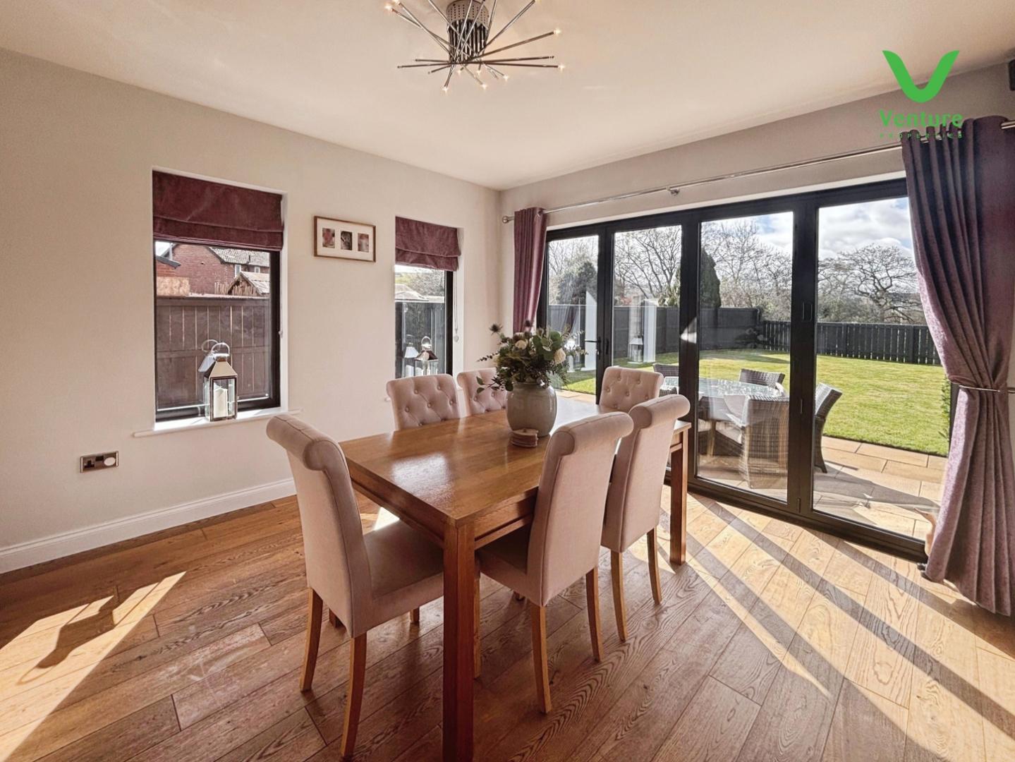 With solid oak flooring, Bifold doors to garden and two upvc double glazed windows.