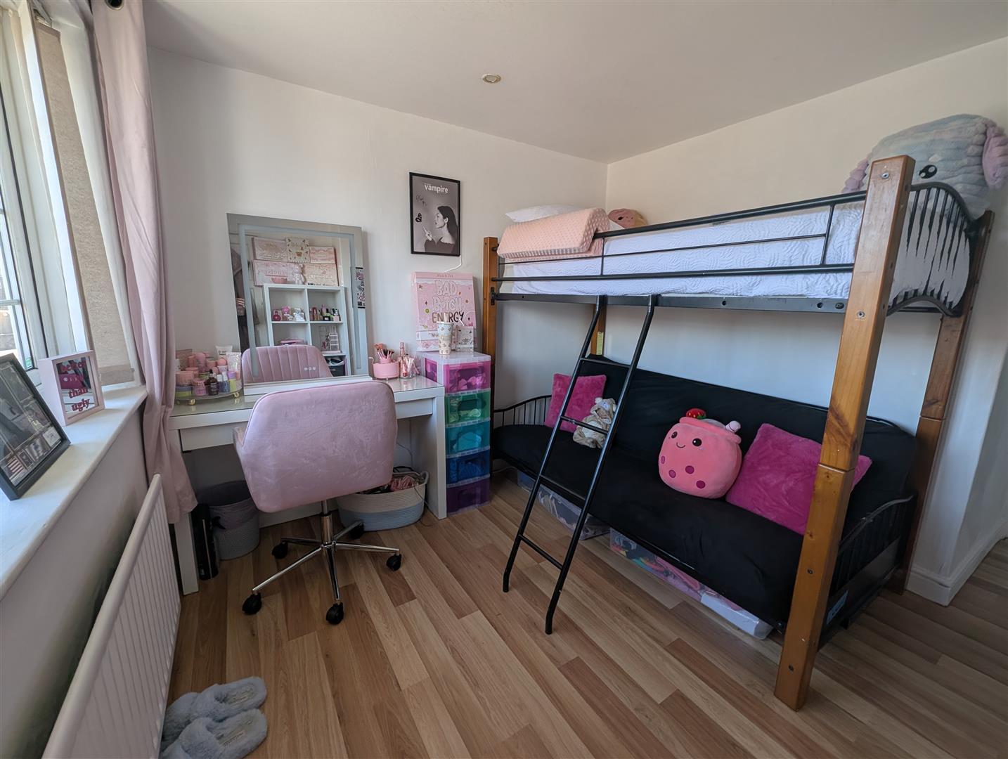 Window to side and storage cupboard.