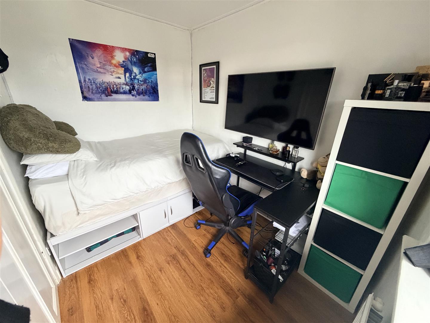 Window to front and storage cupboard.