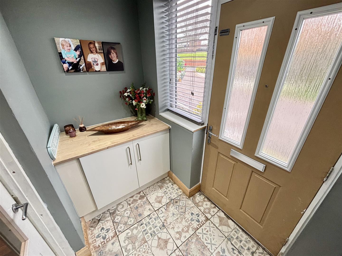 Welcoming porch entered via composite door. Having a storage cupboard, tiled flooring, recessed spotlighting and UPVC double glazed window to the front.