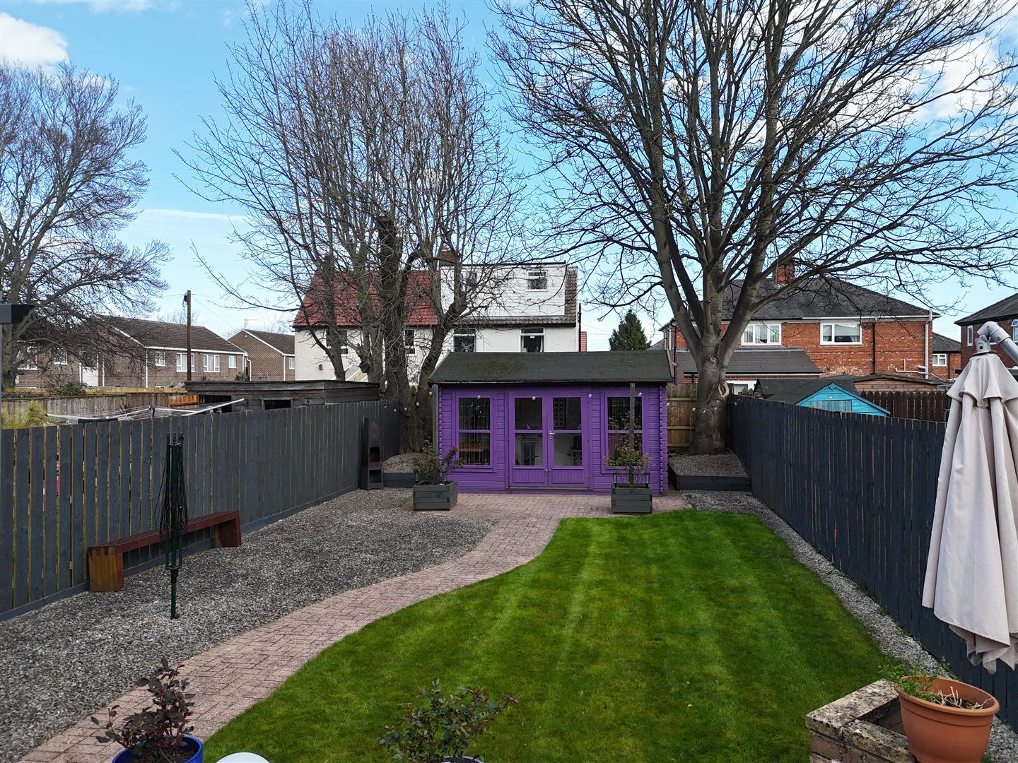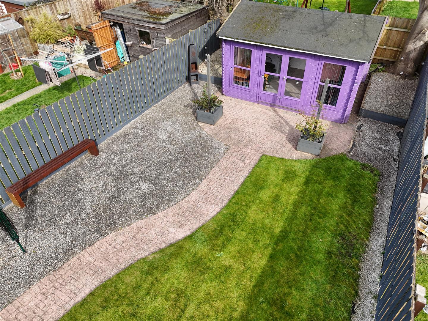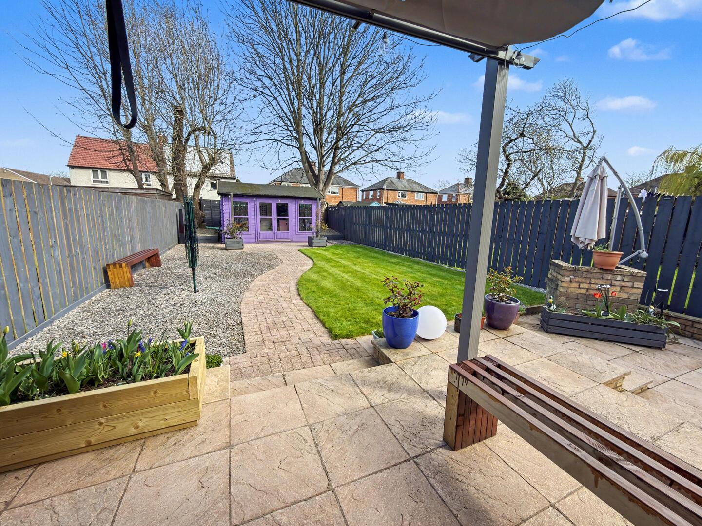 A block-paved driveway to the front provides off-street parking for two cars, with pedestrian side access leading to a stunning, large landscaped rear garden. The garden is predominantly laid to lawn and complemented by paved and patio areas, along with a versatile summerhouse/home office—ideal for outdoor living and remote working.