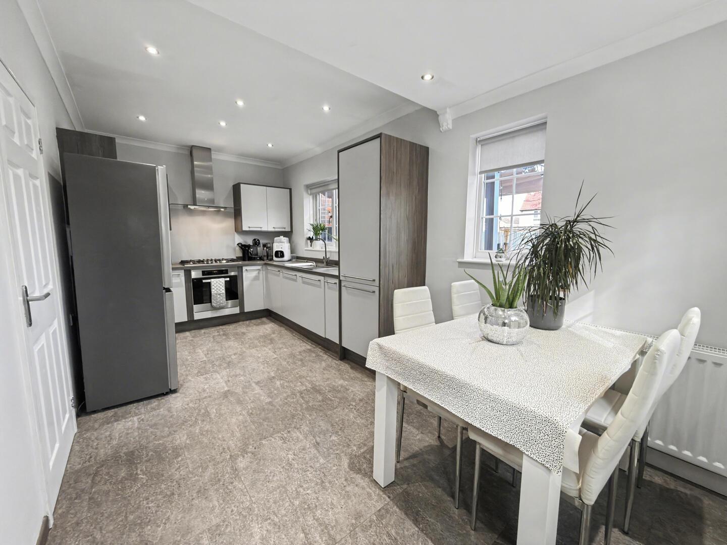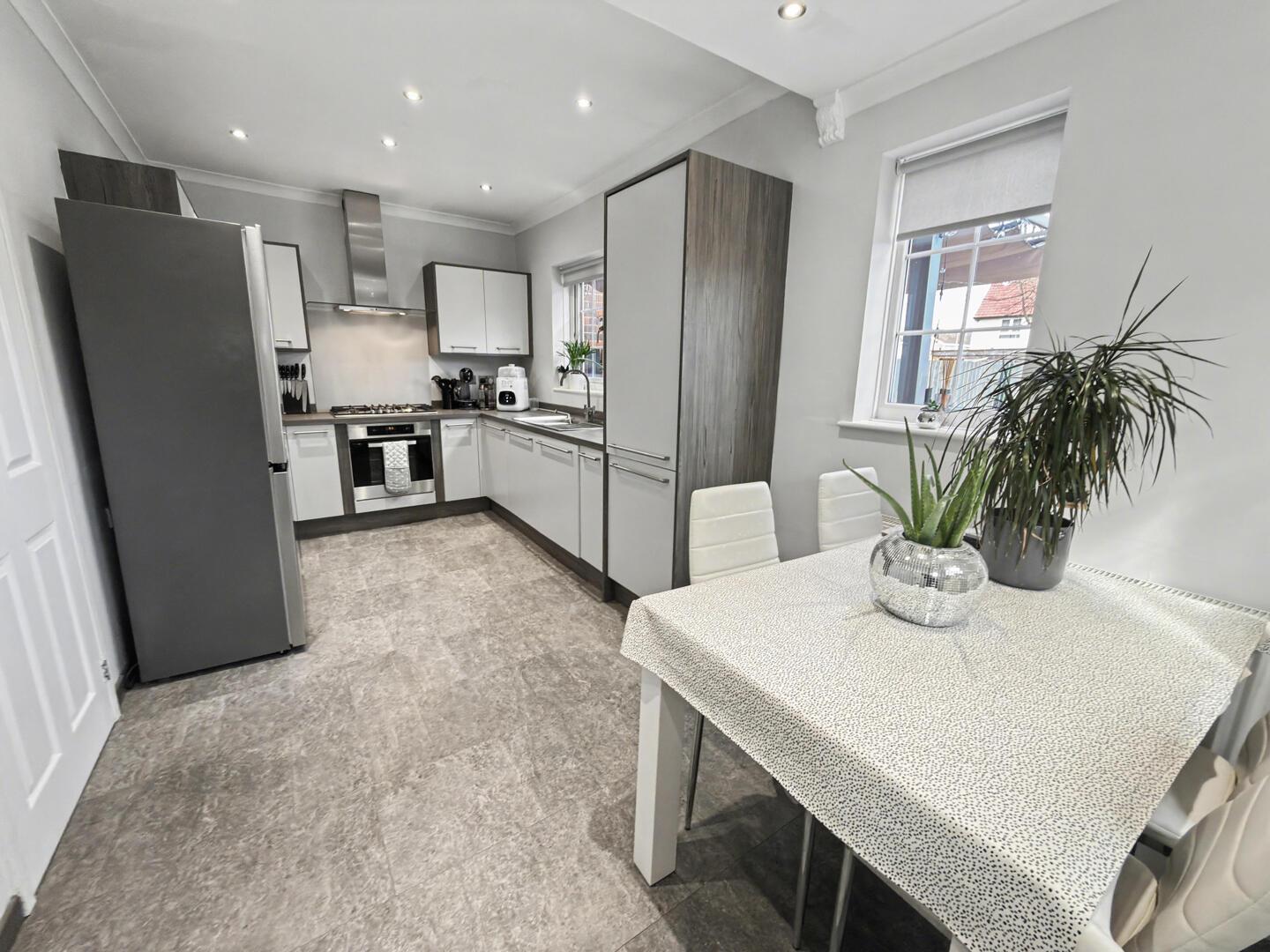 Situated to the rear with a modern range of wall and floor units, double glazed window to rear elevation and rear back door to the side elevation, useful understairs store cupboard.