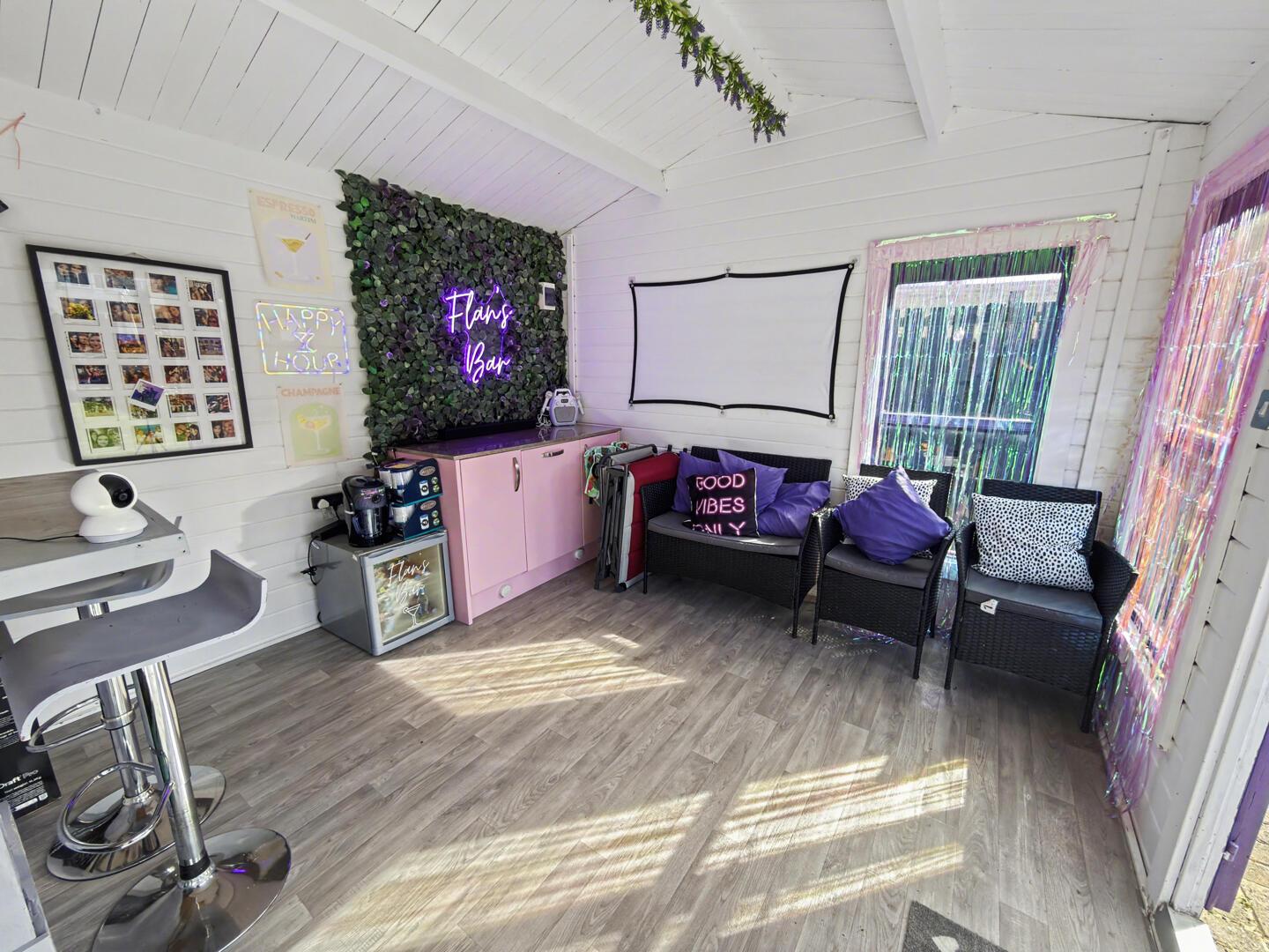 Situated in the pleasing grounds with light and power and double French doors opening out.