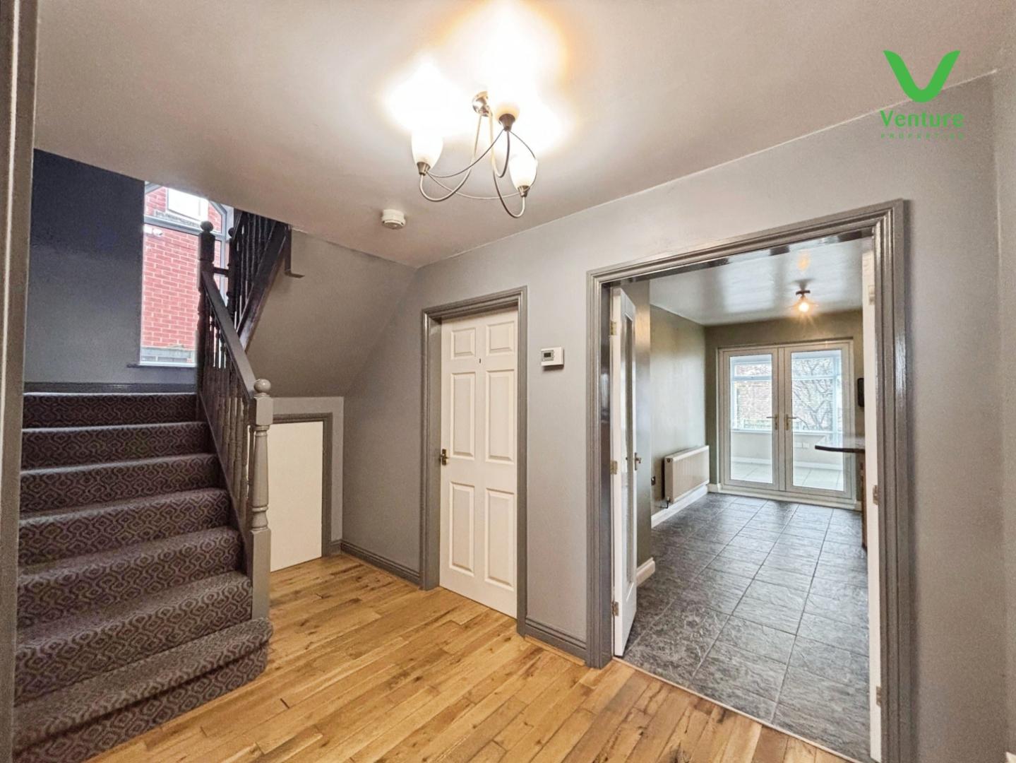 Stairs rise from the inner hallway providing access to the first floor accommodation, the loft and to a useful storage room. Brightened by a floor to ceiling feature window on the stairs.