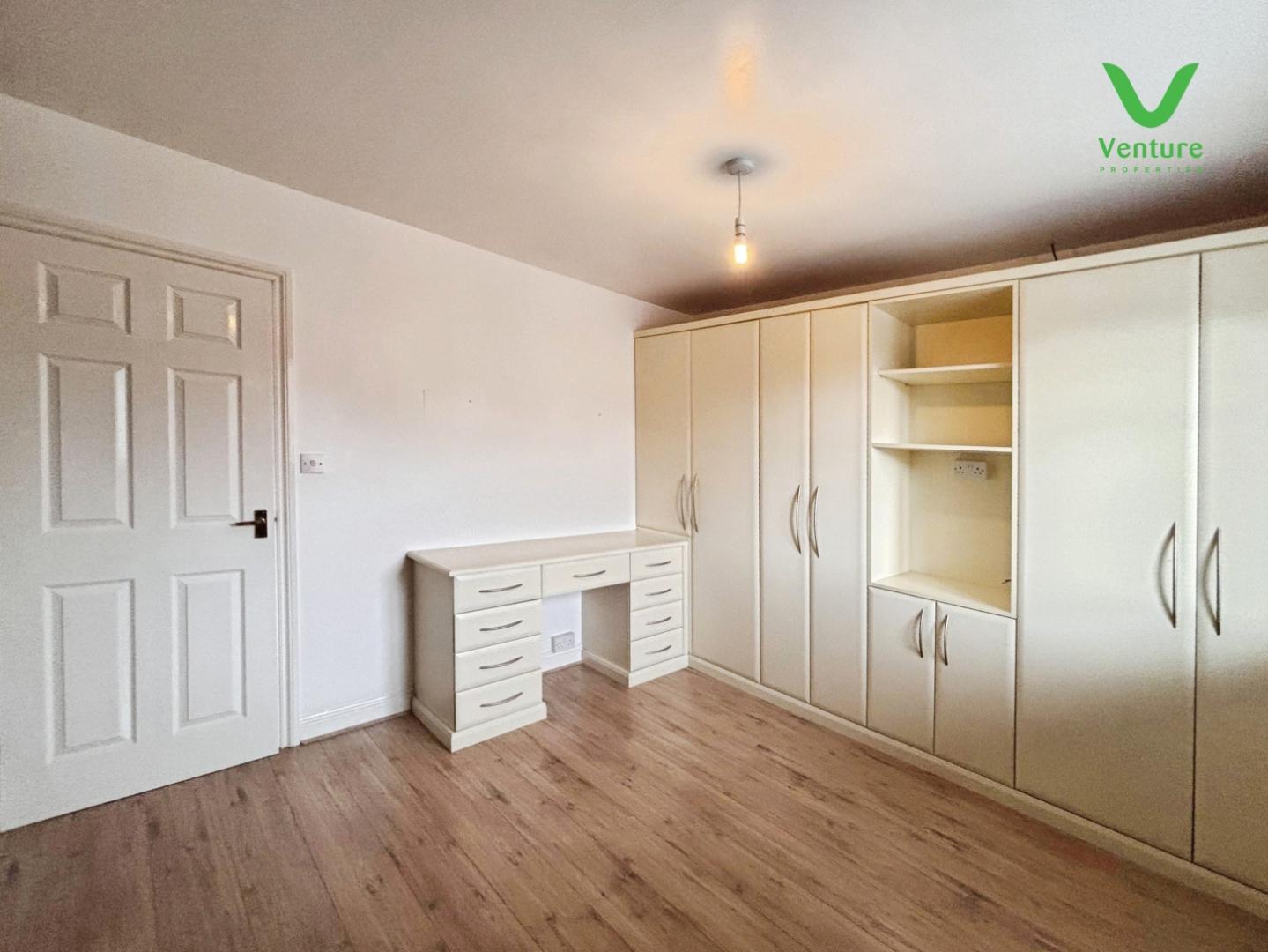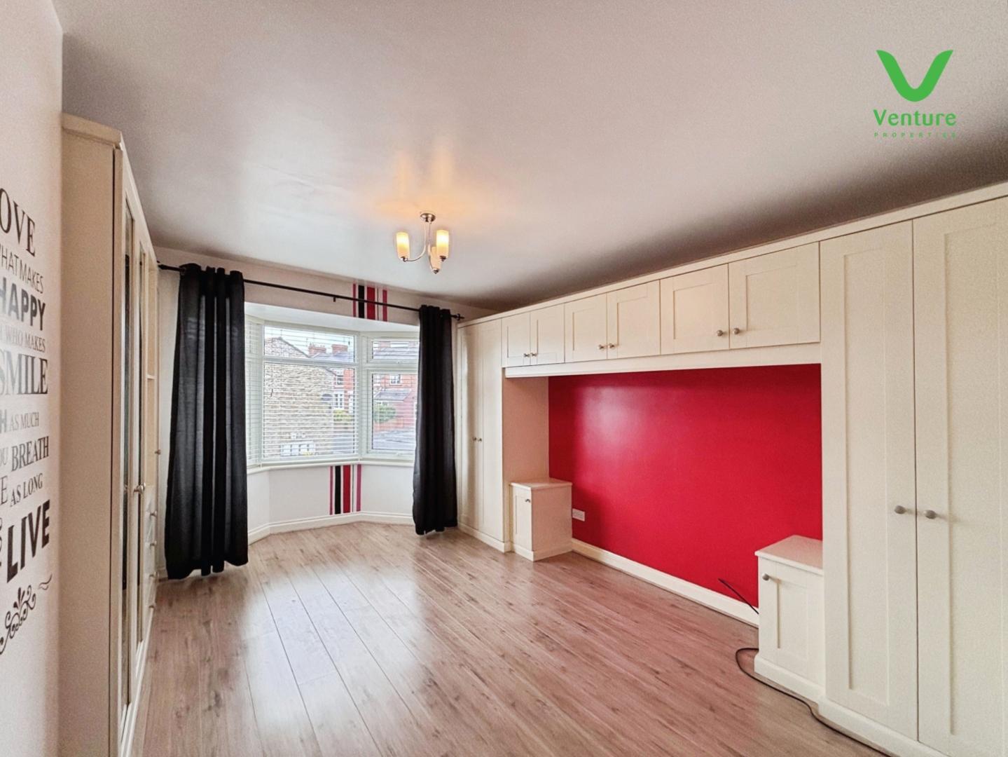A lovely focal point is the UPVC bay window which mirrors that of the lounge, fitted wardrobes and drawers and central heating radiator.