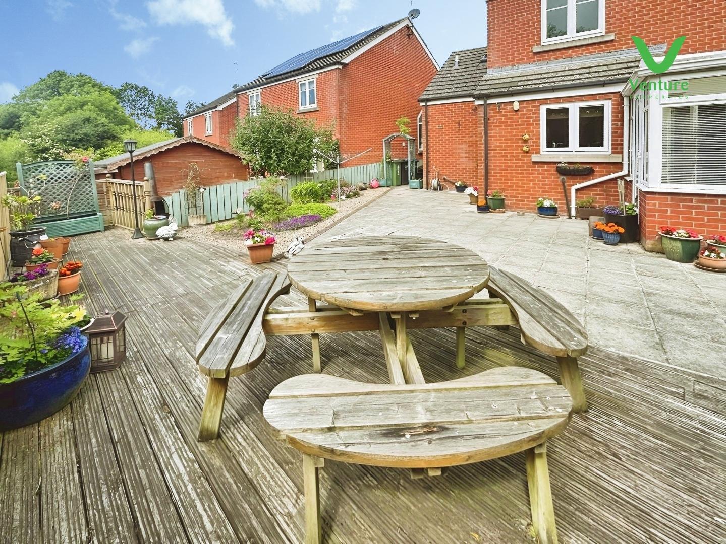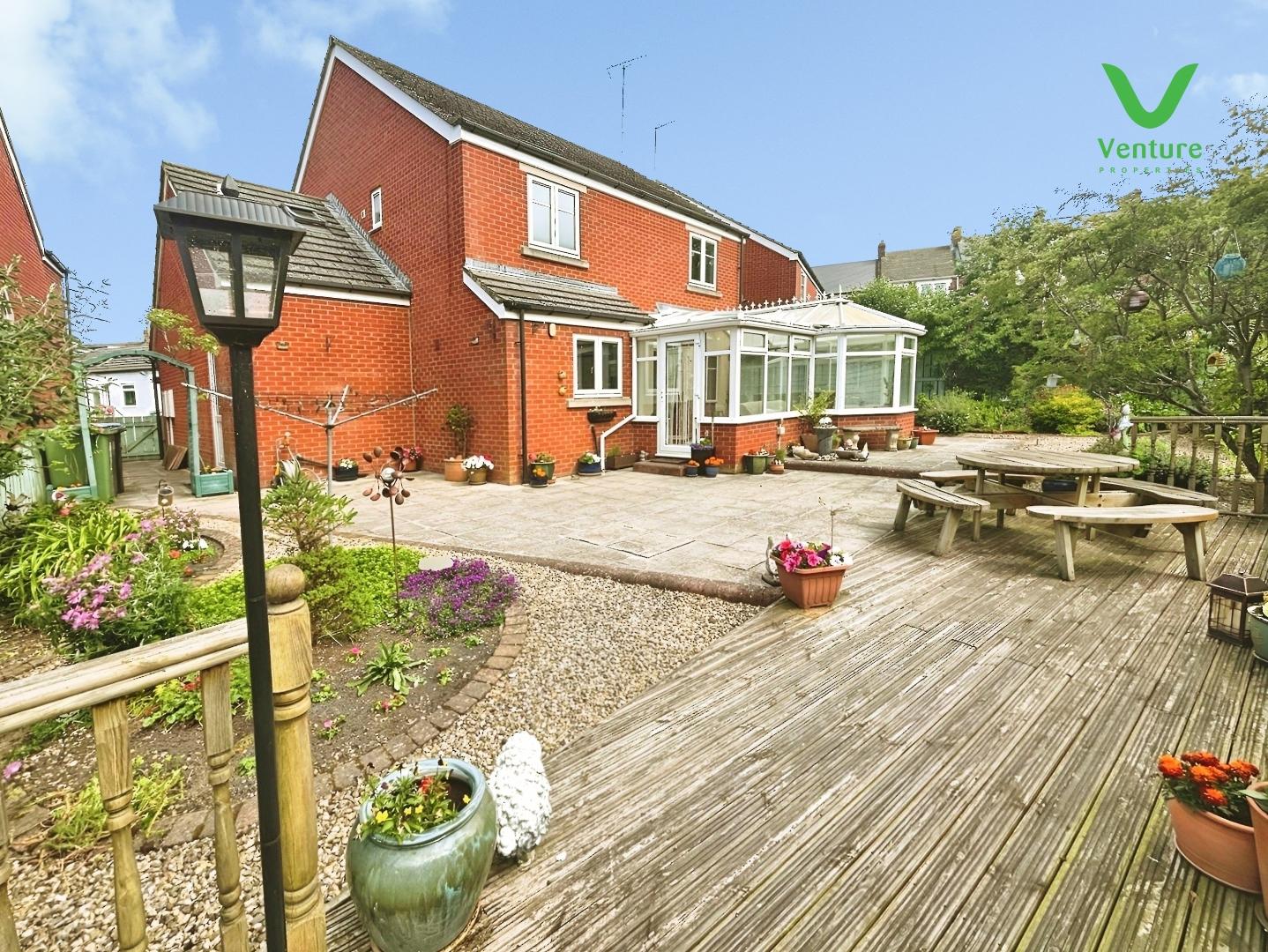 To the front of the property a block paved driveway allows off road parking for multiple vehicles. Gates access to the side of the property into the rear garden with decked seating areas, lawn bounded by fencing with mature shrub and flower borders. A beautiful southern garden which can enjoy the sun all day long.