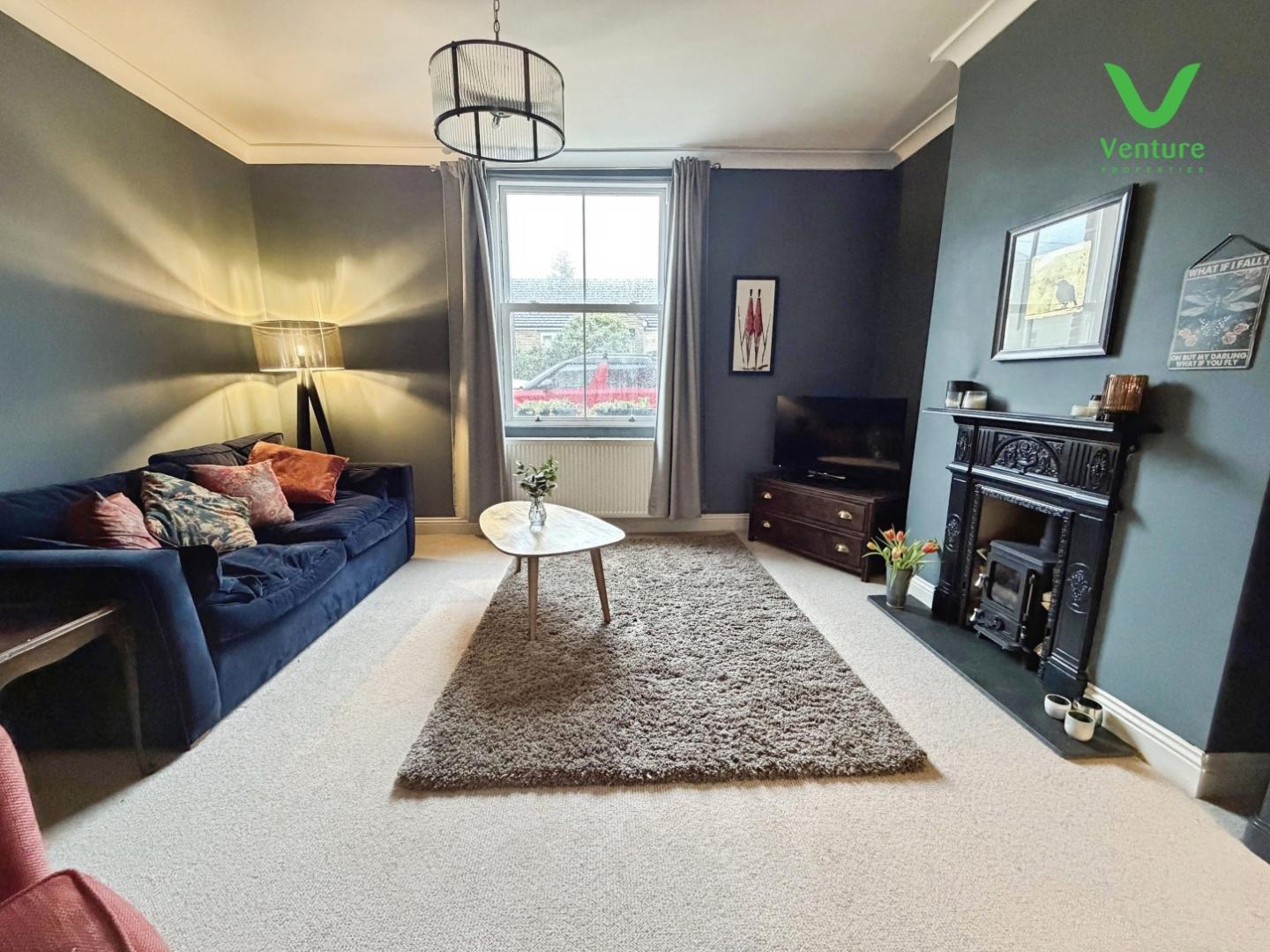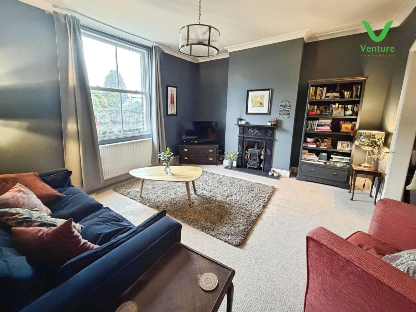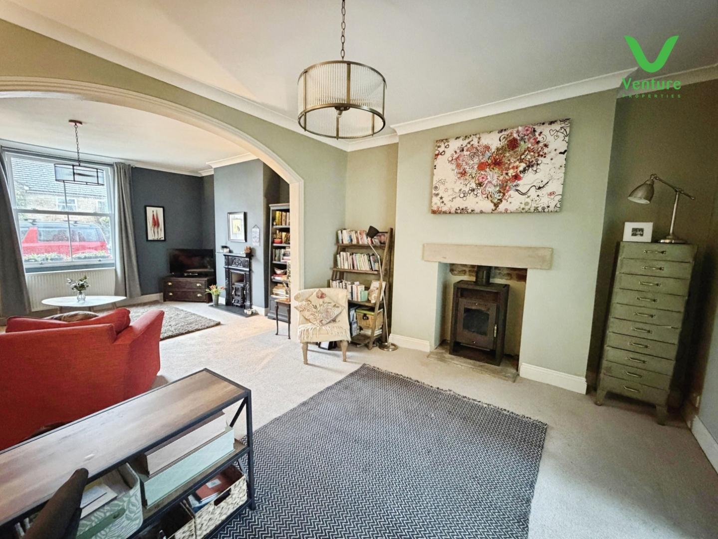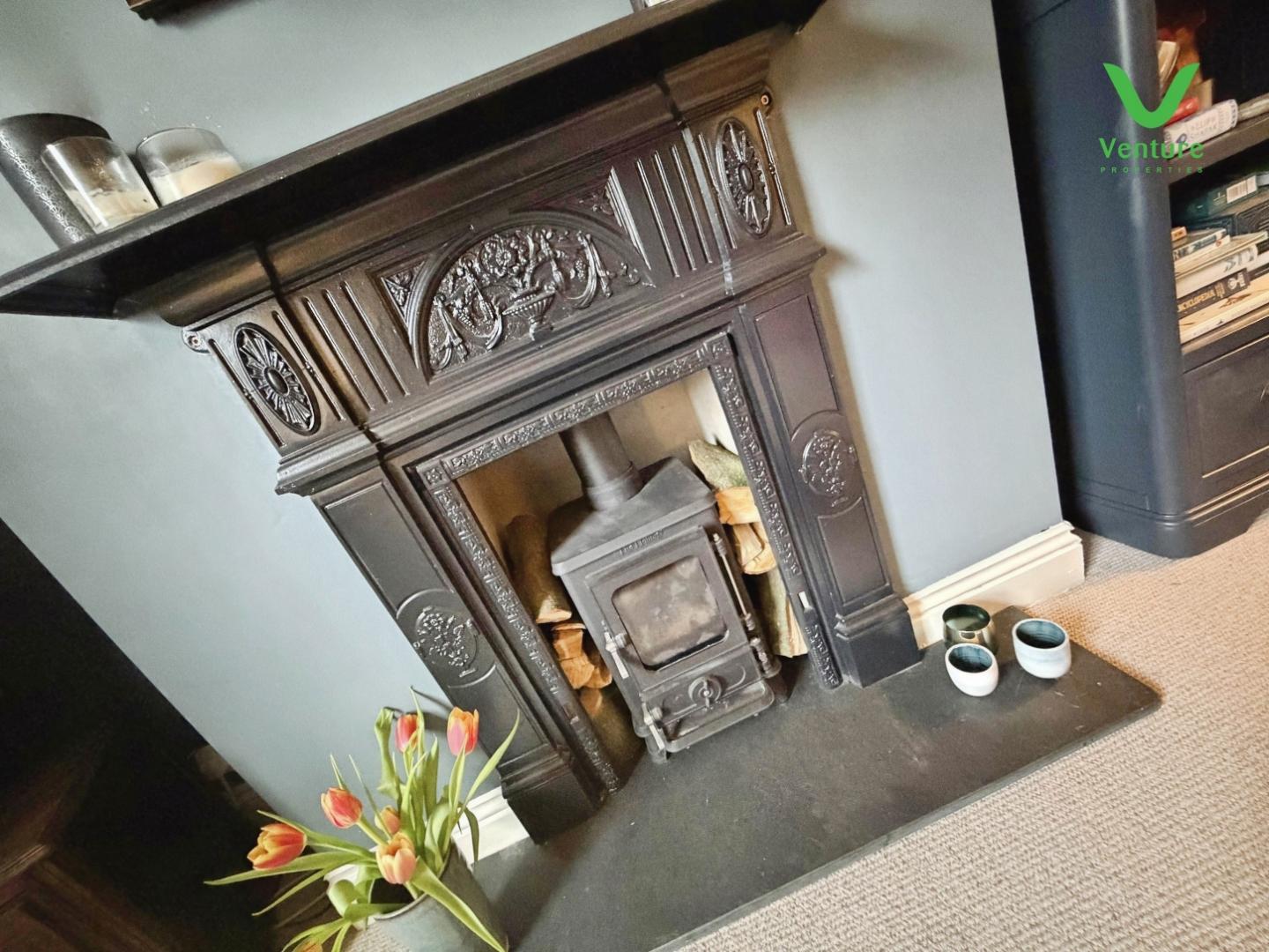 Having feature sash window to front, feature fireplace with cast iron surround housing multi burning stove,